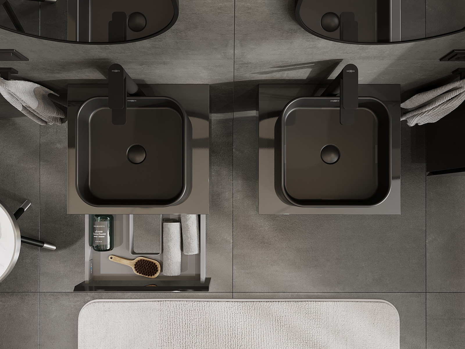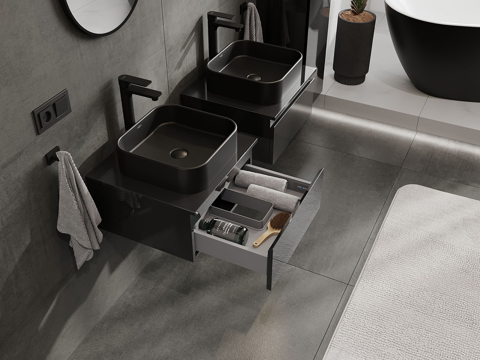 Mexen Orio Badezimmerschrank unter Waschbecken 50 cm mit Arbeitsplatte, 1 Schublade, schwarzer Hochglanz - 91A10-05023-1-BFC70
