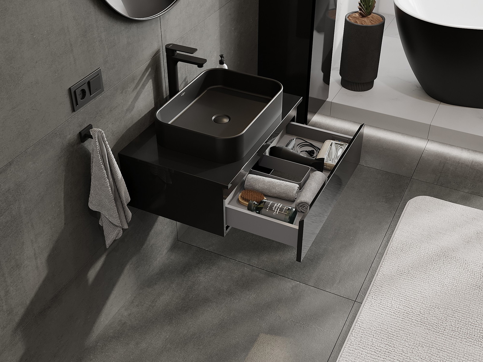 Unsere modularen Badezimmermöbel können in verschiedenen Farbkonfigurationen miteinander kombiniert werden, wodurch eine vollständige Personalisierung ermöglicht wird. Man kann sowohl das Aussehen als auch die Funktionen der einzelnen Elemente auswählen, was es erlaubt, die Möbel an eigene stilistische und funktionale Vorlieben anzupassen.
