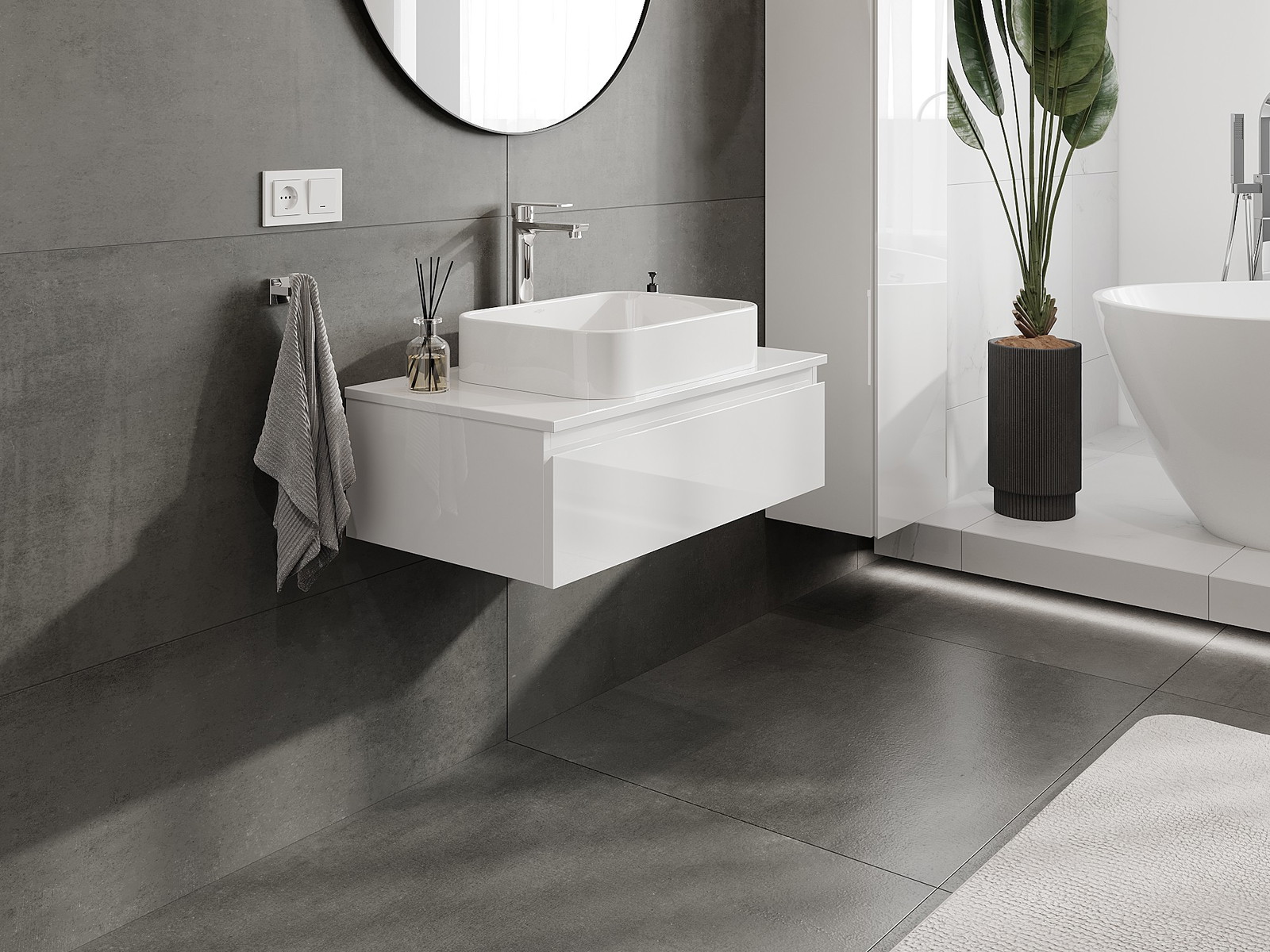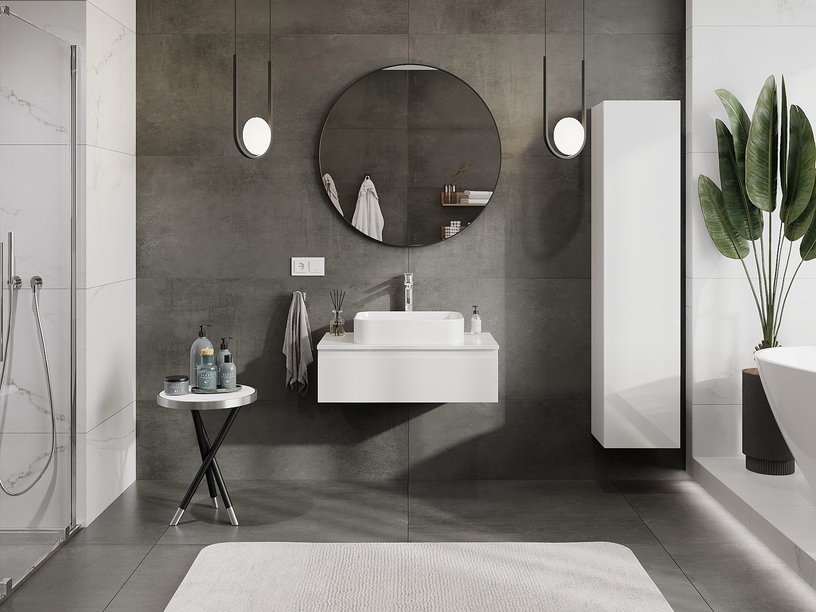 Unsere modularen Badezimmermöbel können in verschiedenen Farbkonfigurationen miteinander kombiniert werden, wodurch eine vollständige Personalisierung ermöglicht wird. Man kann sowohl das Aussehen als auch die Funktionen der einzelnen Elemente auswählen, was es erlaubt, die Möbel an eigene stilistische und funktionale Vorlieben anzupassen.