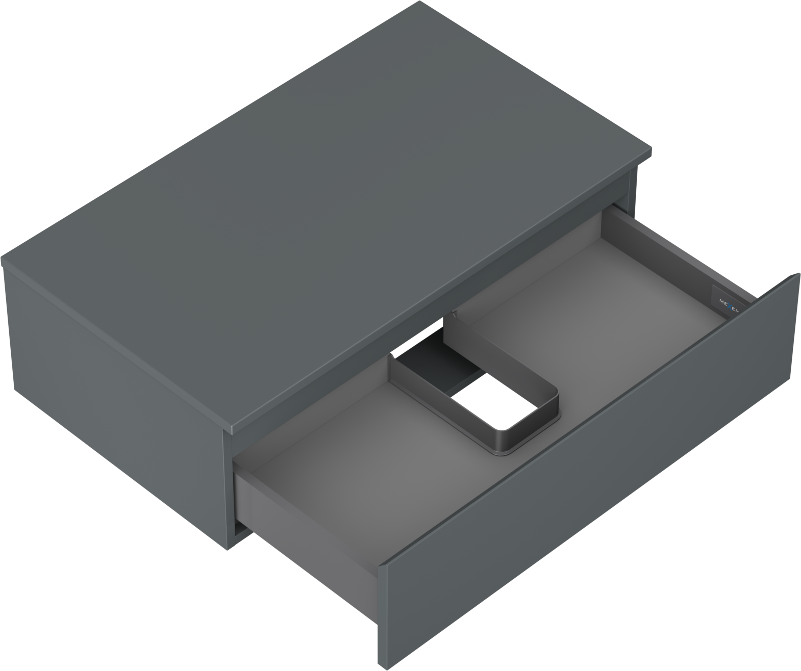 Der Ausschnitt in der Schublade ist so gestaltet, dass er den Siphon aufnehmen kann, der für Waschbeckeninstallationen erforderlich ist. Dadurch kann das Möbelstück voll funktionsfähig montiert werden, ohne auf den Platz in der Schublade zugunsten der Installation verzichten zu müssen.