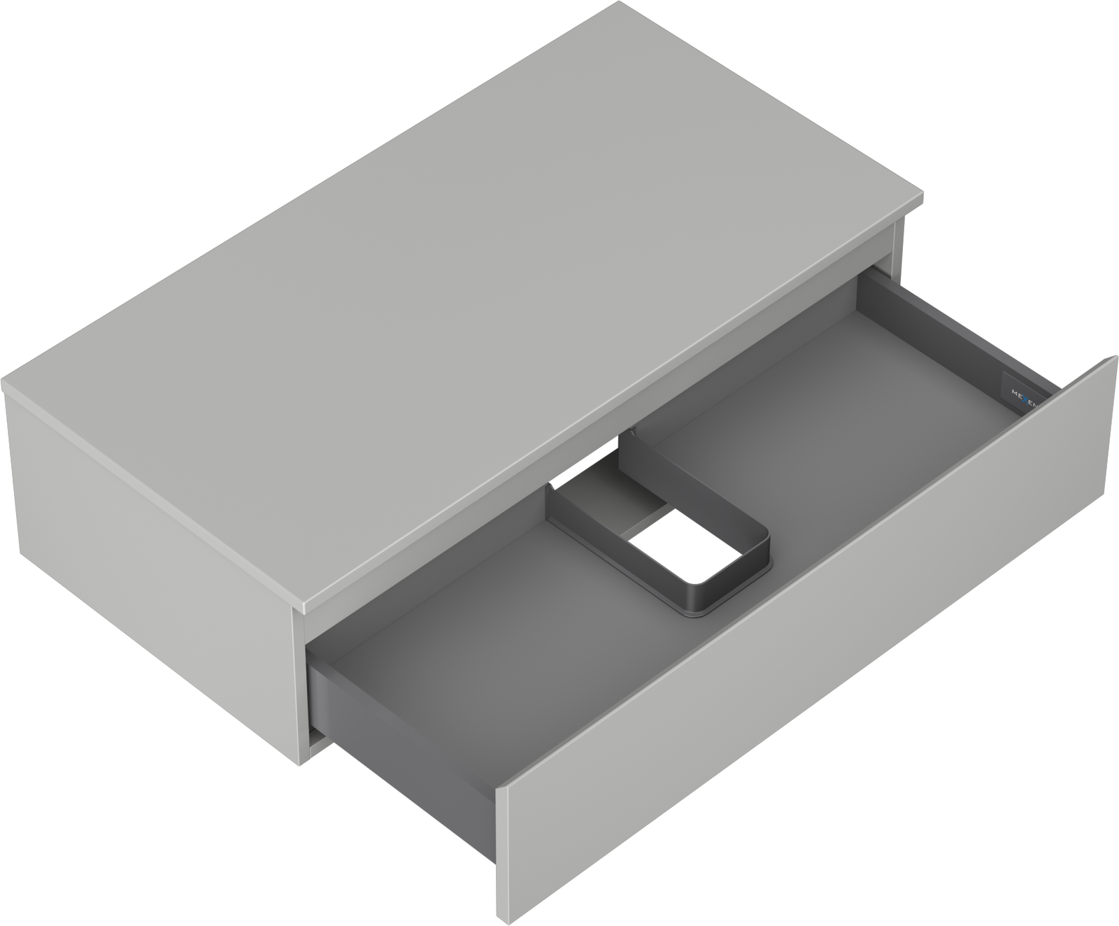 Der Ausschnitt in der Schublade ist so gestaltet, dass er den Siphon aufnehmen kann, der für Waschbeckeninstallationen erforderlich ist. Dadurch kann das Möbelstück voll funktionsfähig montiert werden, ohne auf den Platz in der Schublade zugunsten der Installation verzichten zu müssen.