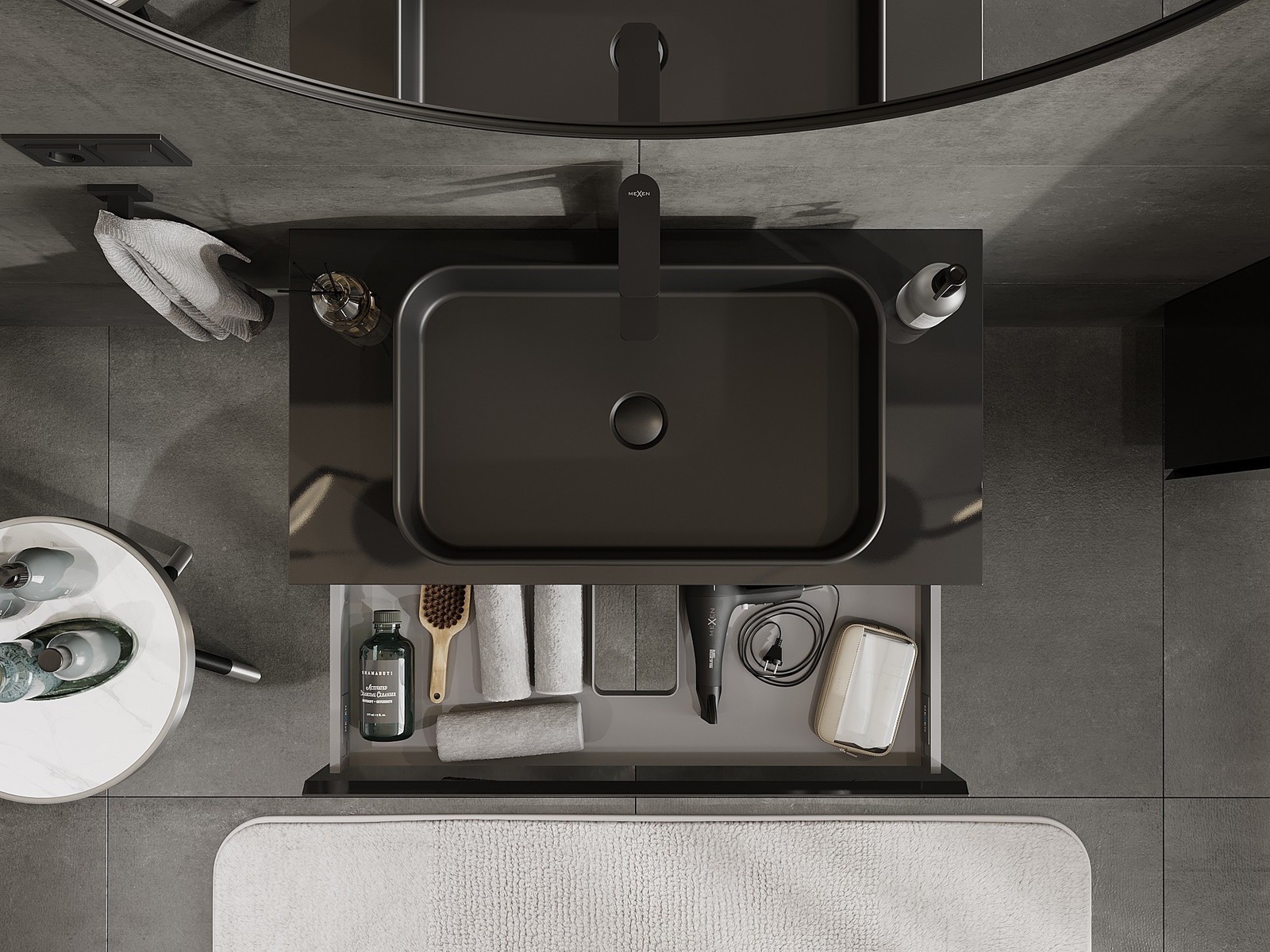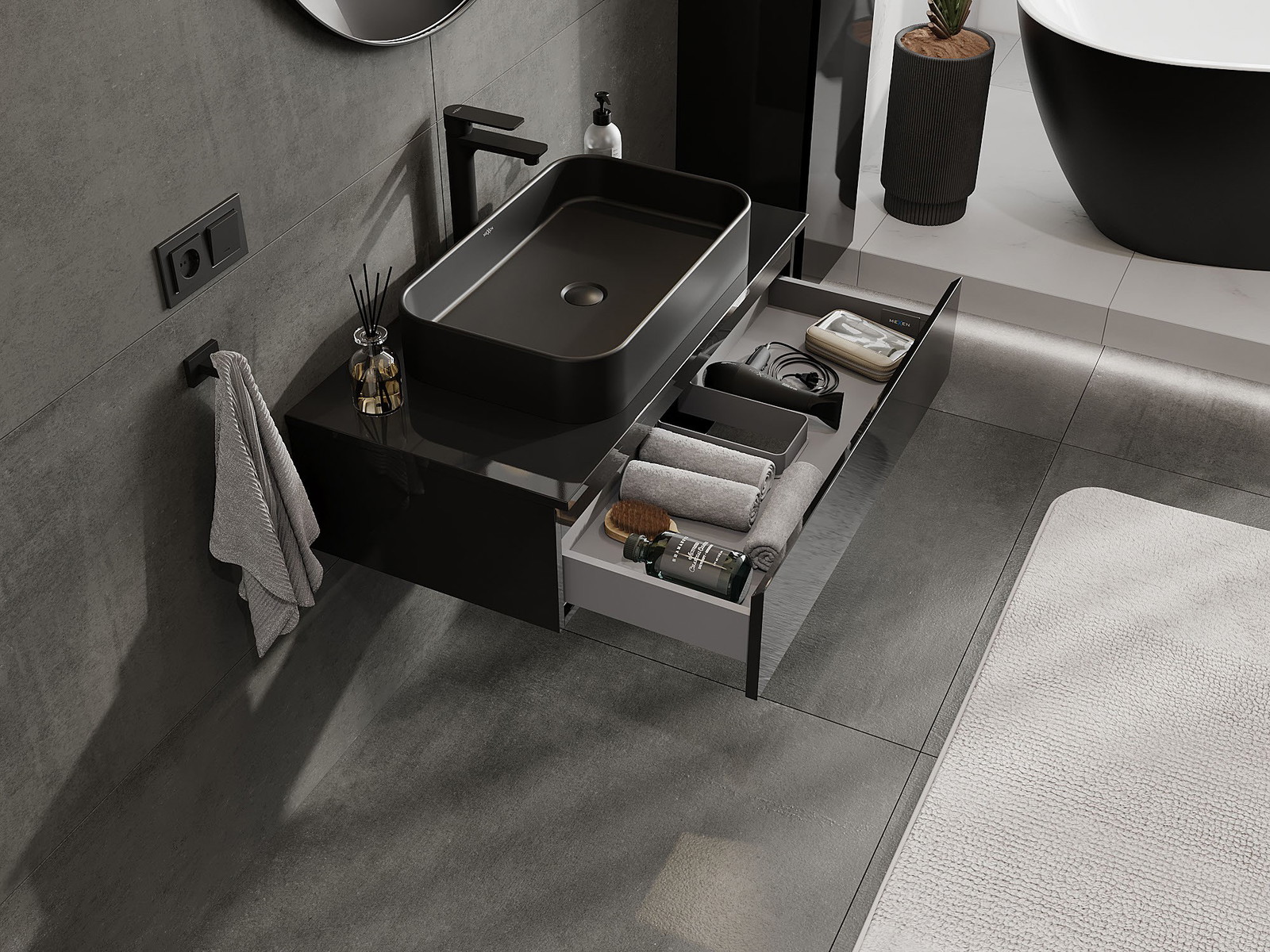 Mexen Orio Badezimmerschrank unter dem Waschbecken 90 cm mit Arbeitsplatte, 1 Schublade, schwarz glänzend - 91A10-09023-1-BFC70
