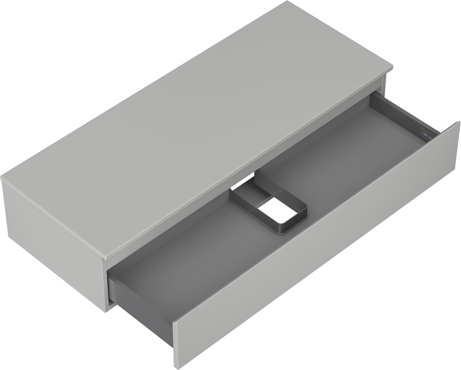 Der Ausschnitt in der Schublade ist so gestaltet, dass er den Siphon aufnehmen kann, der für Waschbeckeninstallationen erforderlich ist. Dadurch kann das Möbelstück voll funktionsfähig montiert werden, ohne auf den Platz in der Schublade zugunsten der Installation verzichten zu müssen.