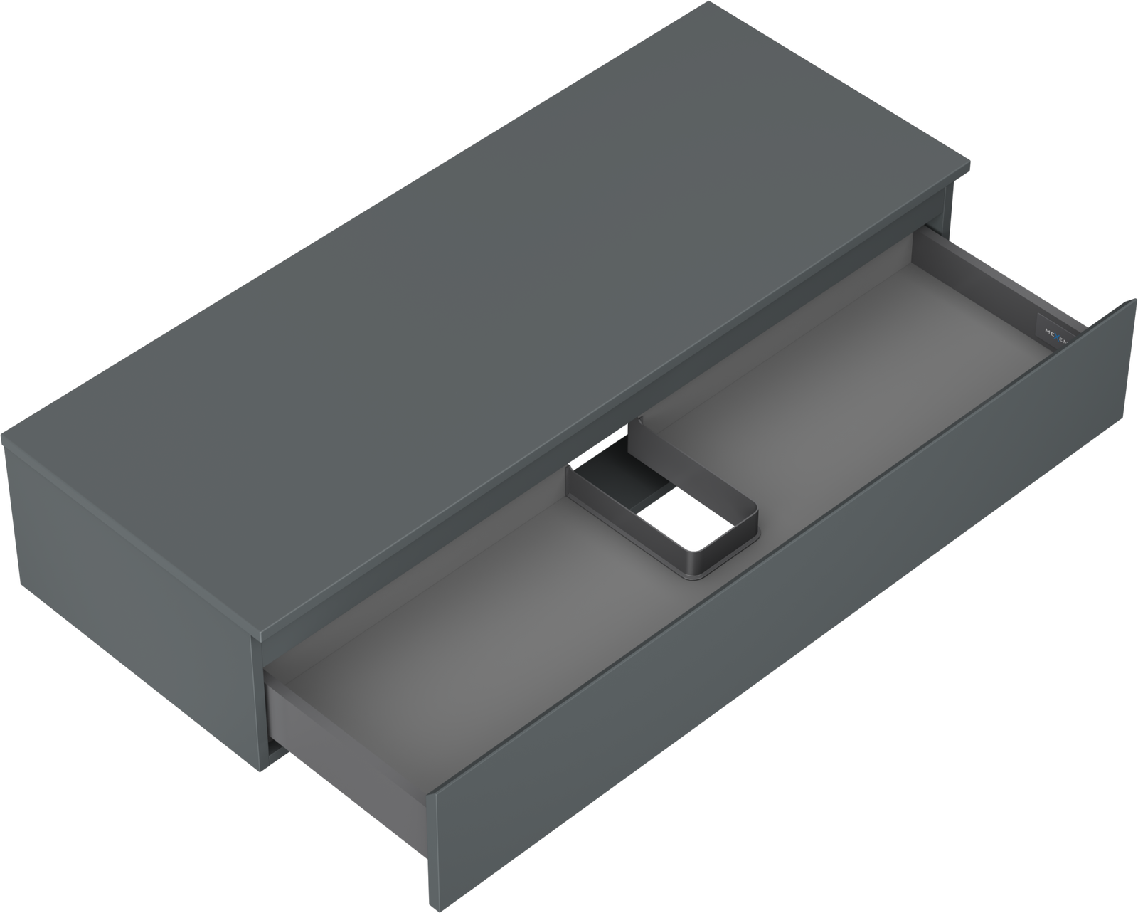 Der Ausschnitt in der Schublade ist so gestaltet, dass er den Siphon aufnehmen kann, der für Waschbeckeninstallationen erforderlich ist. Dadurch kann das Möbelstück voll funktionsfähig montiert werden, ohne auf den Platz in der Schublade zugunsten der Installation verzichten zu müssen.