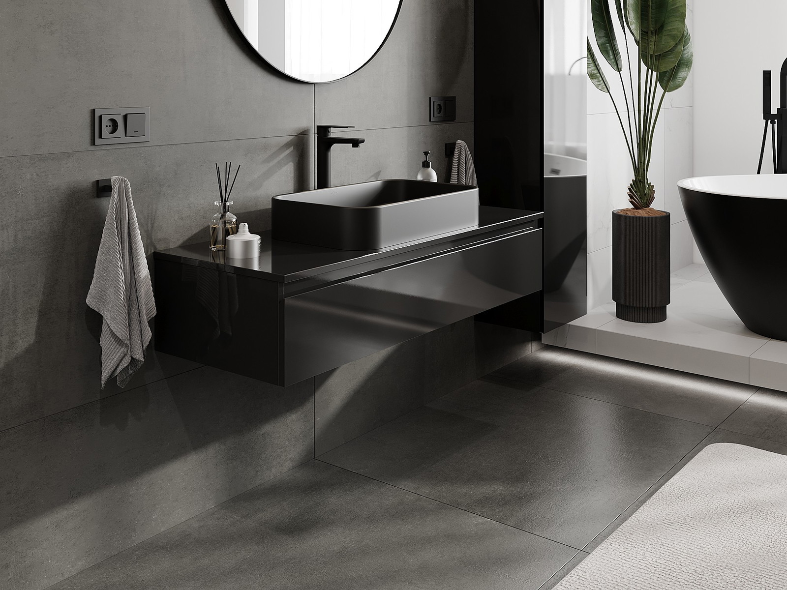 Unsere modularen Badezimmermöbel können in verschiedenen Farbkonfigurationen miteinander kombiniert werden, wodurch eine vollständige Personalisierung ermöglicht wird. Man kann sowohl das Aussehen als auch die Funktionen der einzelnen Elemente auswählen, was es erlaubt, die Möbel an eigene stilistische und funktionale Vorlieben anzupassen.