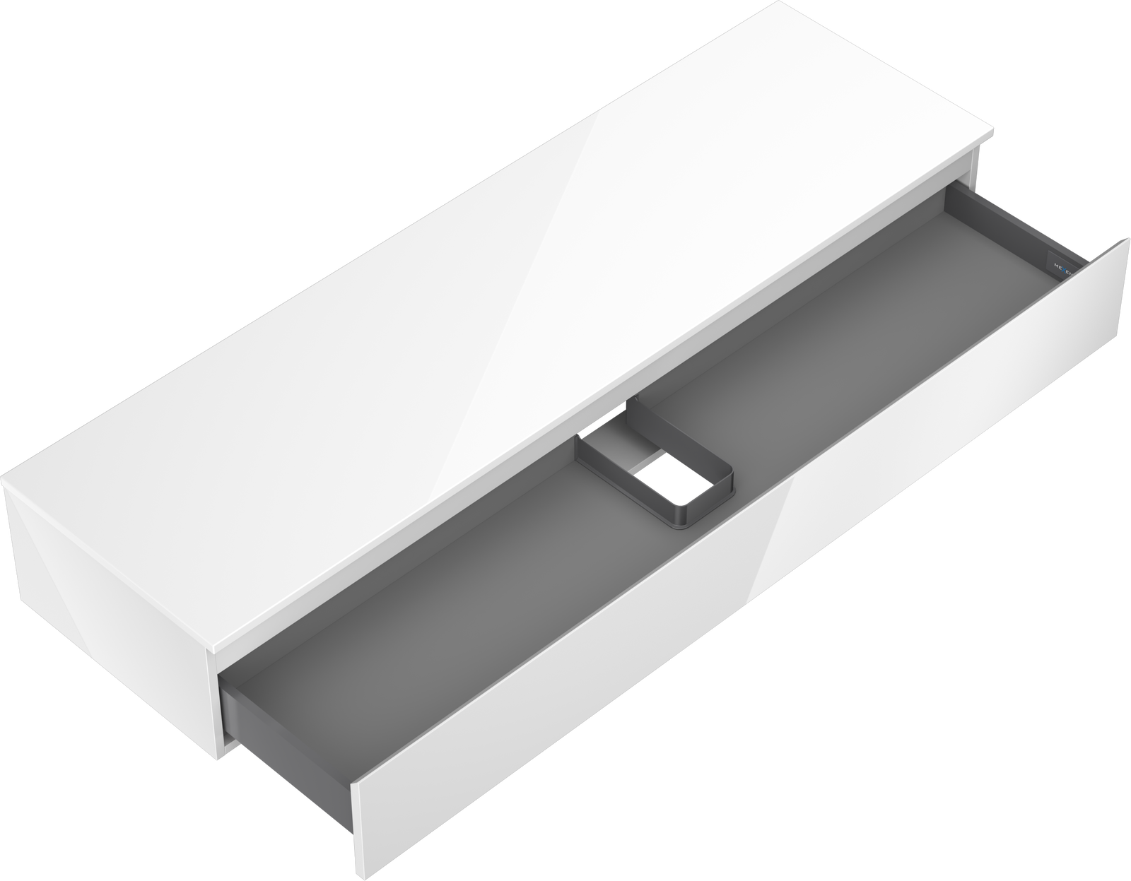 Der Ausschnitt in der Schublade ist für die Aufnahme eines Siphons ausgelegt, der für die Installation von Waschbecken unerlässlich ist. Dadurch kann das Möbelstück voll funktionsfähig installiert werden, ohne dass für die Installation Schubladenplatz geopfert werden muss.