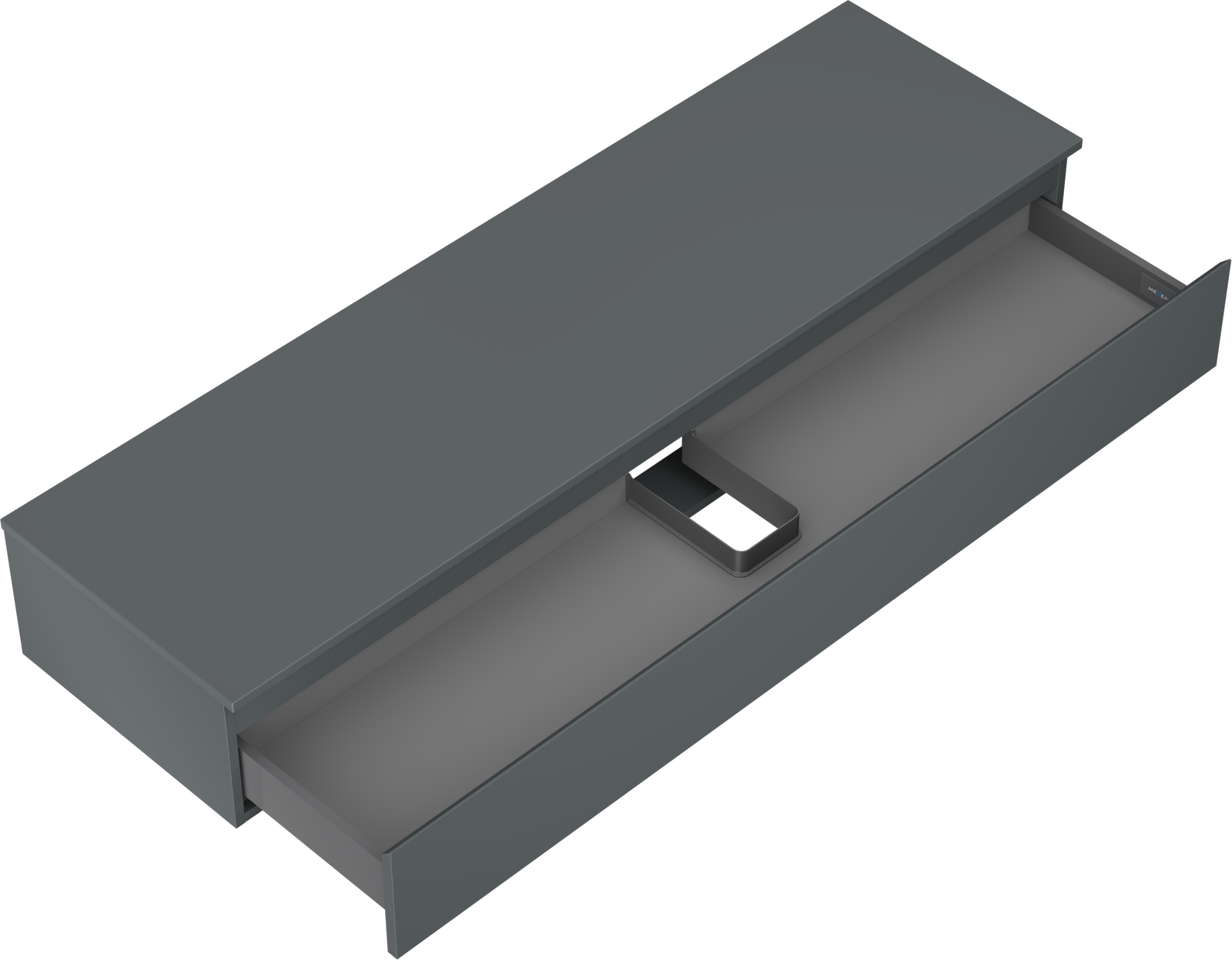 Der Ausschnitt in der Schublade ist für die Aufnahme eines Siphons ausgelegt, der für die Installation von Waschbecken unerlässlich ist. Dadurch kann das Möbelstück voll funktionsfähig installiert werden, ohne dass für die Installation Schubladenplatz geopfert werden muss.