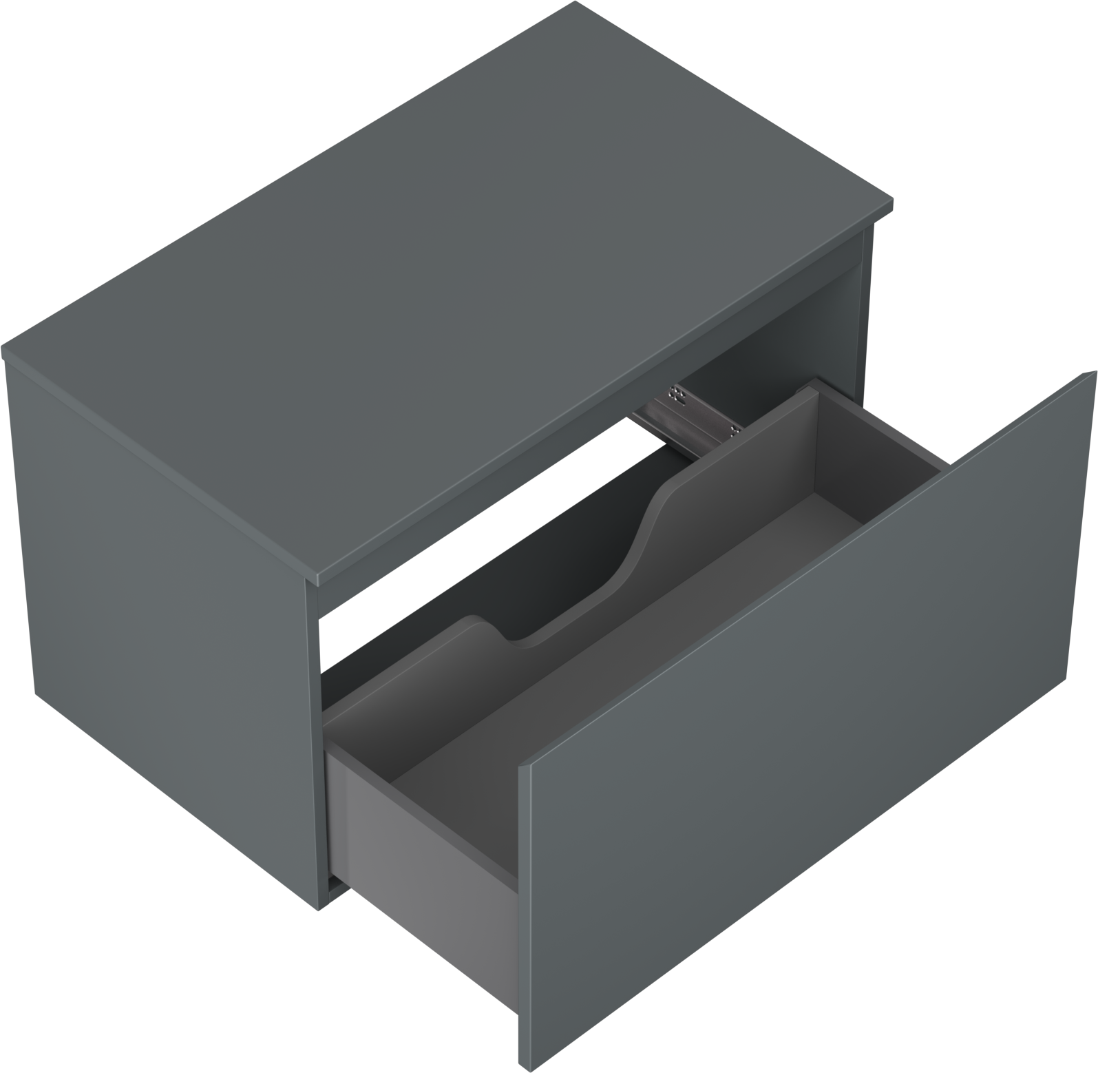 Der Ausschnitt in der Schublade ist so gestaltet, dass er den Siphon aufnehmen kann, der für Waschbeckeninstallationen erforderlich ist. Dadurch kann das Möbelstück voll funktionsfähig montiert werden, ohne auf den Platz in der Schublade zugunsten der Installation verzichten zu müssen.