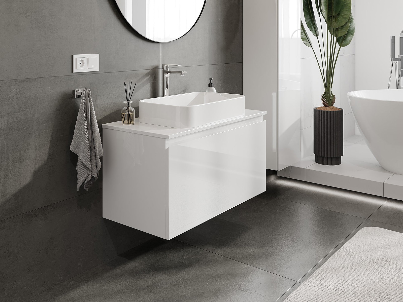 Eine mit hochwertigem Lack beschichtete Platte ist die perfekte Wahl für das Badezimmer, da sie ein elegantes Aussehen sowie hohe Beständigkeit gegen Feuchtigkeit und Kratzer bietet. Der hochwertige Lack schützt die Oberfläche der Arbeitsplatte und sorgt für dauerhafte Haltbarkeit, Ästhetik und einfache Pflege.