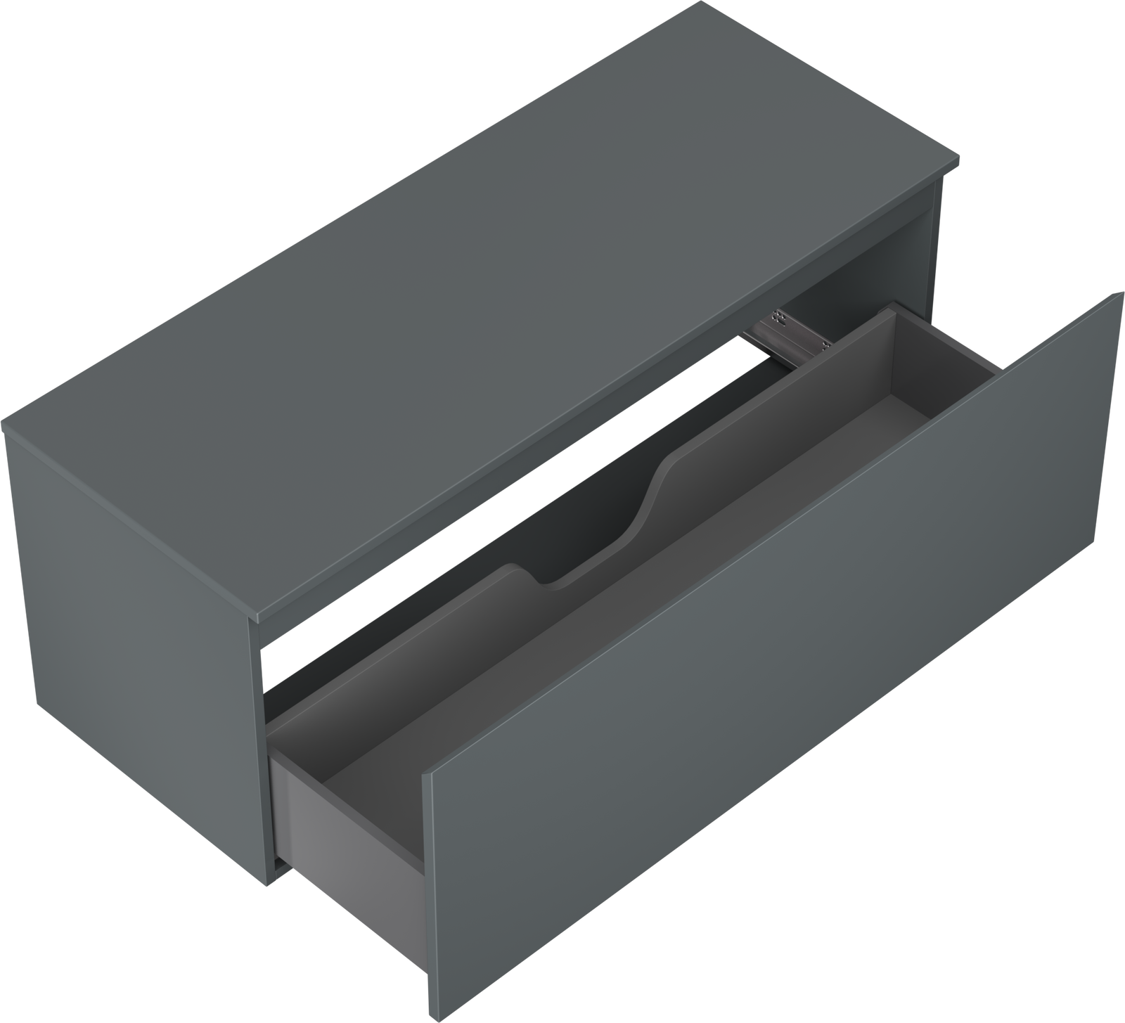 Der Ausschnitt in der Schublade ist so gestaltet, dass er den Siphon aufnehmen kann, der für Waschbeckeninstallationen erforderlich ist. Dadurch kann das Möbelstück voll funktionsfähig montiert werden, ohne auf den Platz in der Schublade zugunsten der Installation verzichten zu müssen.