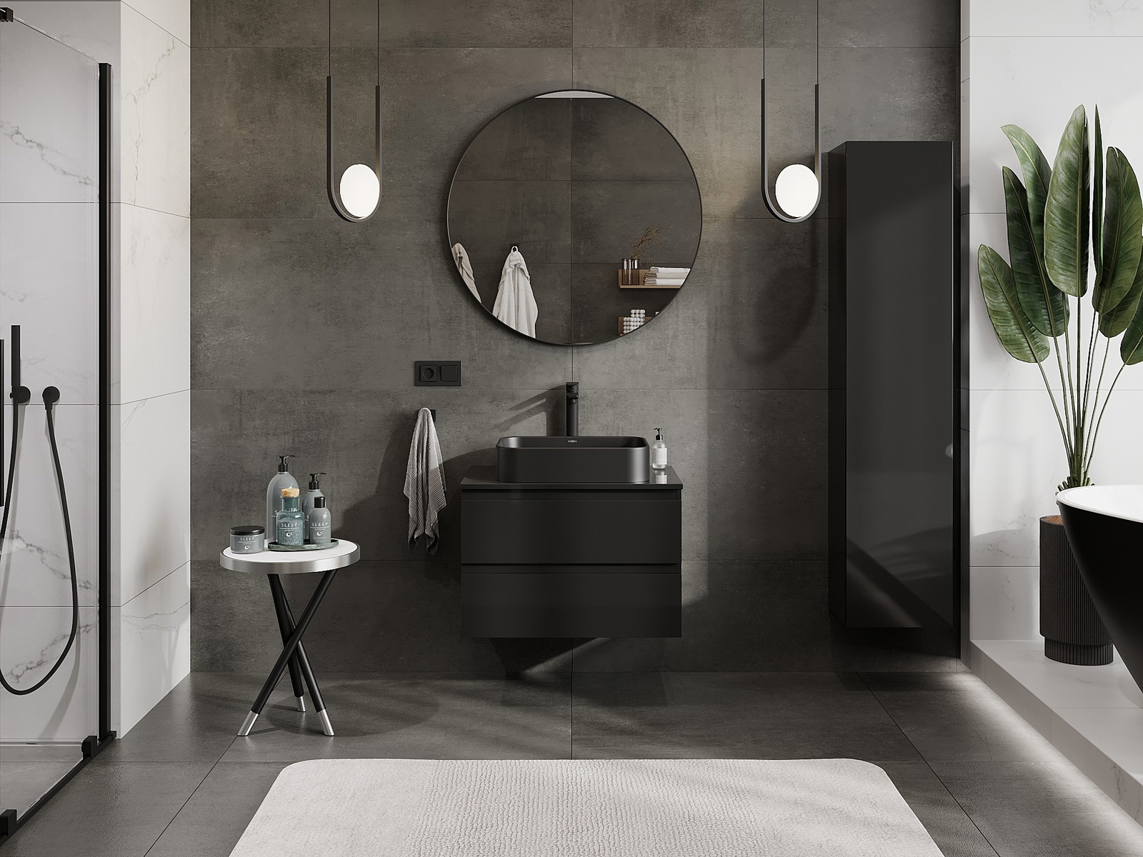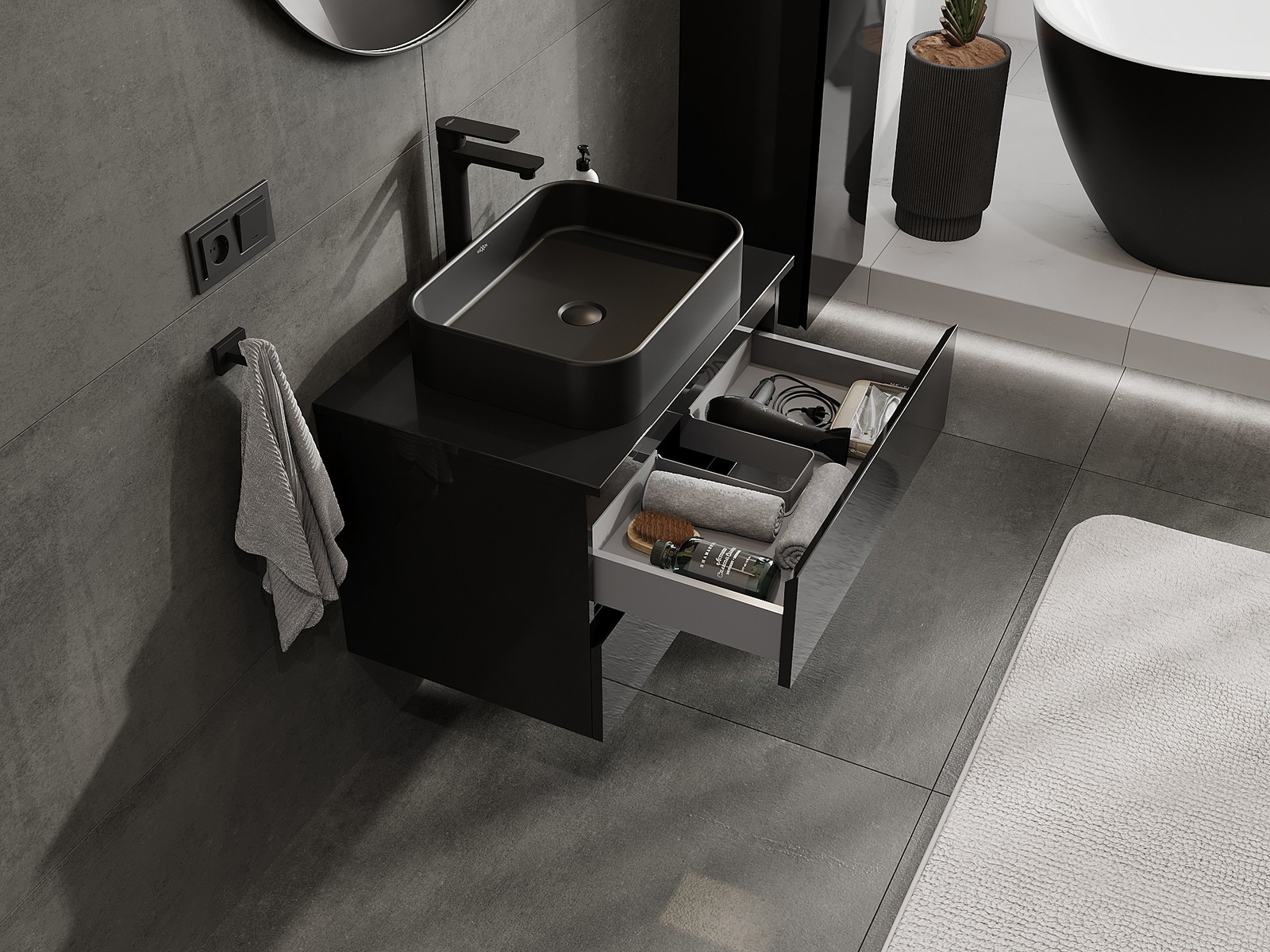 Unsere modularen Badezimmermöbel können in verschiedenen Farbkonfigurationen miteinander kombiniert werden, wodurch eine vollständige Personalisierung ermöglicht wird. Man kann sowohl das Aussehen als auch die Funktionen der einzelnen Elemente auswählen, was es erlaubt, die Möbel an eigene stilistische und funktionale Vorlieben anzupassen.