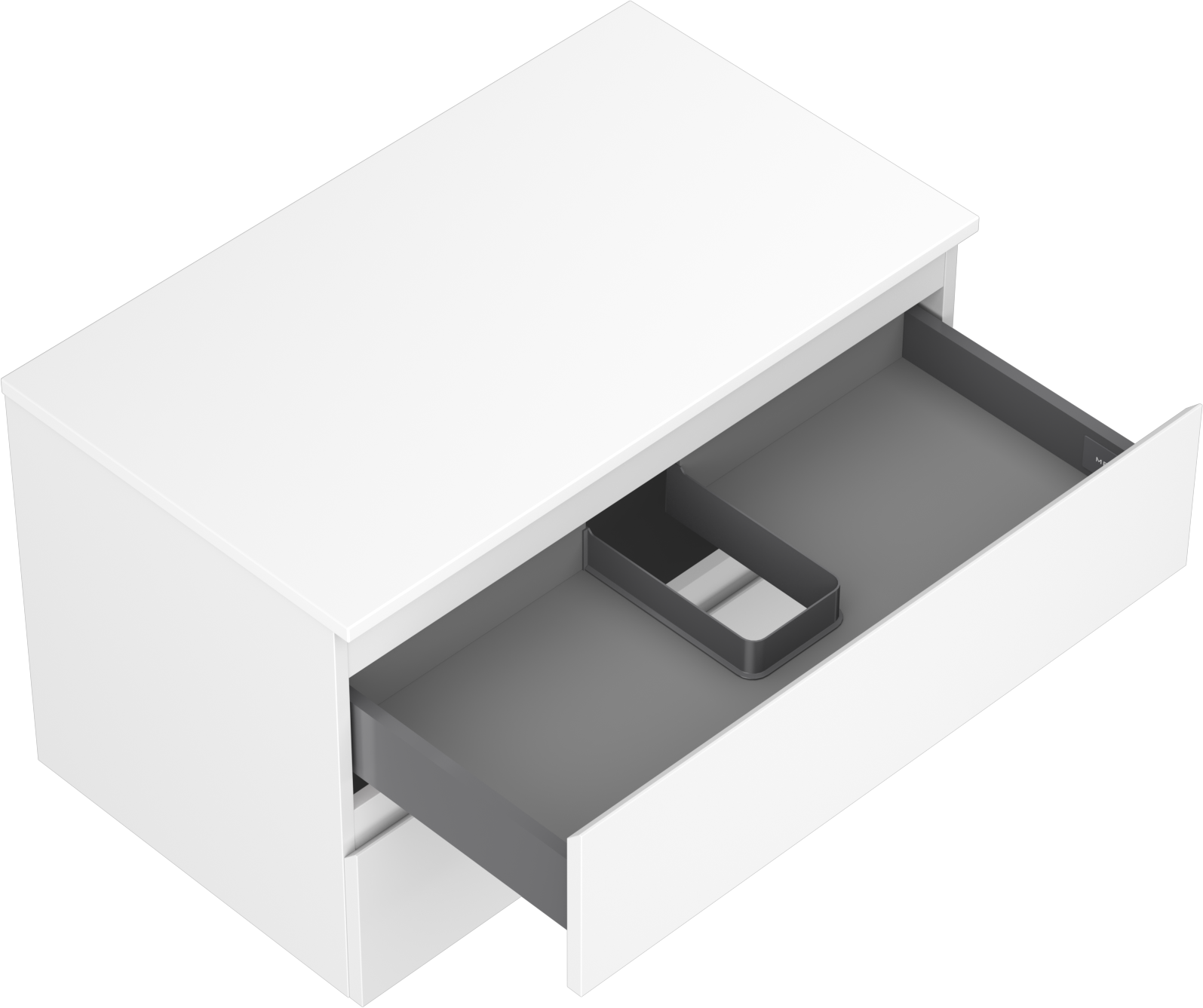 Der Ausschnitt in der Schublade ist so gestaltet, dass er den Siphon aufnehmen kann, der für Waschbeckeninstallationen erforderlich ist. Dadurch kann das Möbelstück voll funktionsfähig montiert werden, ohne auf den Platz in der Schublade zugunsten der Installation verzichten zu müssen.