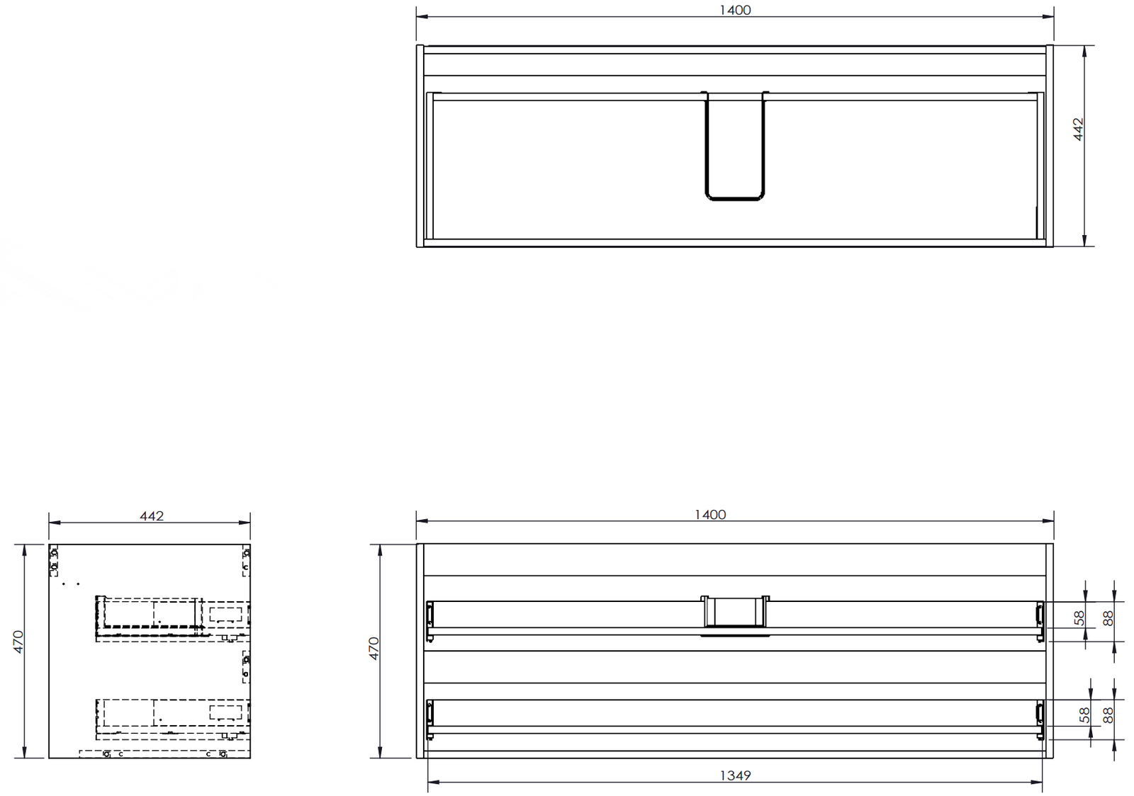 Der Ausschnitt in der Schublade ist so gestaltet, dass er den Siphon aufnehmen kann, der für Waschbeckeninstallationen erforderlich ist. Dadurch kann das Möbelstück voll funktionsfähig montiert werden, ohne auf den Platz in der Schublade zugunsten der Installation verzichten zu müssen.
