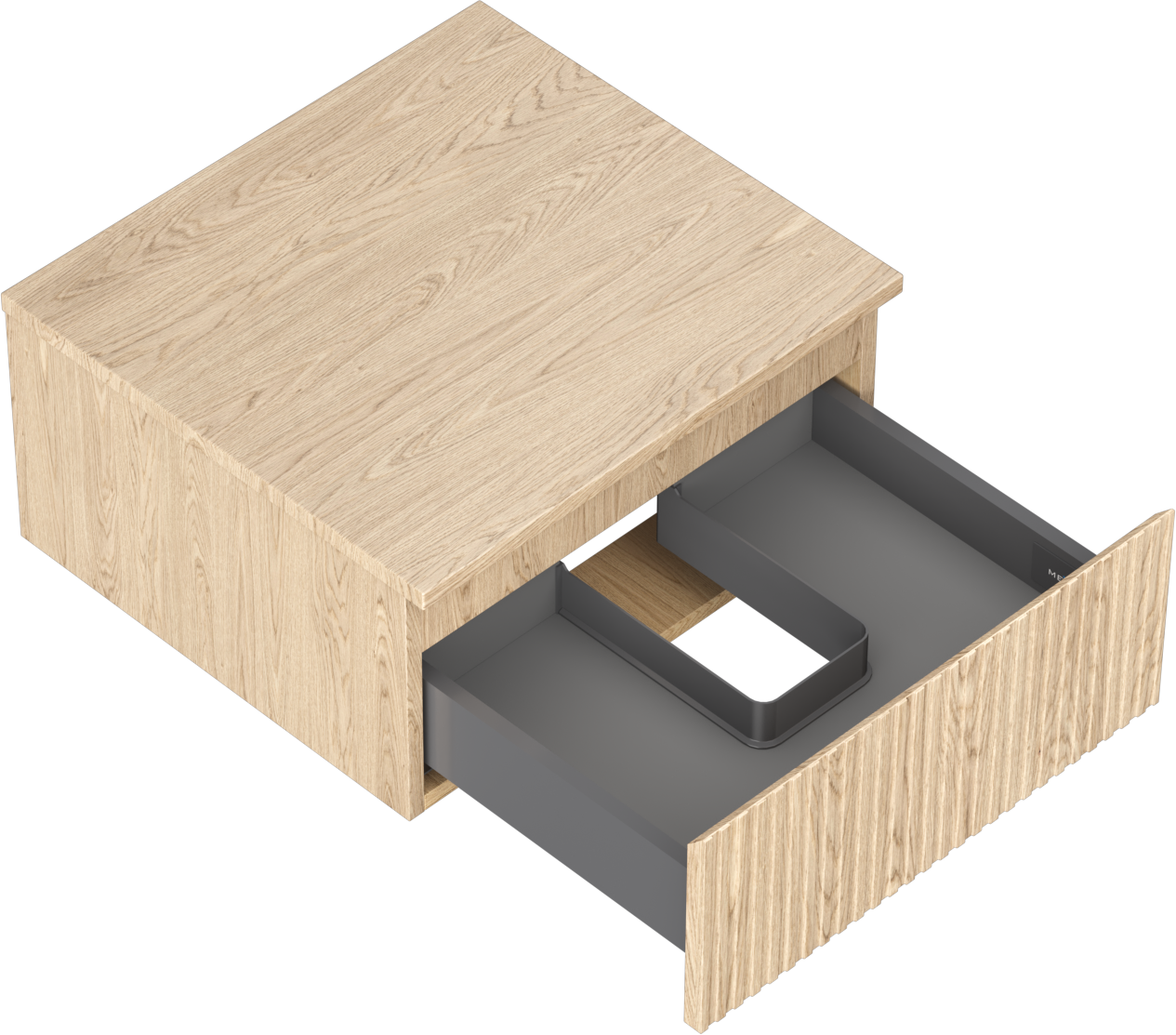 Der Ausschnitt in der Schublade ist für die Aufnahme eines Siphons ausgelegt, der für die Installation von Waschbecken unerlässlich ist. Dadurch kann das Möbelstück voll funktionsfähig installiert werden, ohne dass für die Installation Schubladenplatz geopfert werden muss.