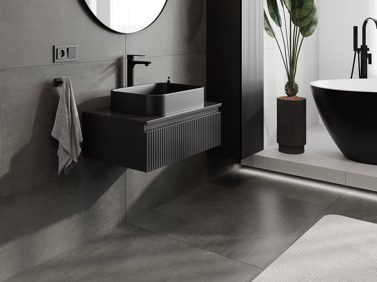 Unsere modularen Badezimmermöbel können in verschiedenen Farbkonfigurationen miteinander kombiniert werden, wodurch eine vollständige Personalisierung ermöglicht wird. Man kann sowohl das Aussehen als auch die Funktionen der einzelnen Elemente auswählen, was es erlaubt, die Möbel an eigene stilistische und funktionale Vorlieben anzupassen.