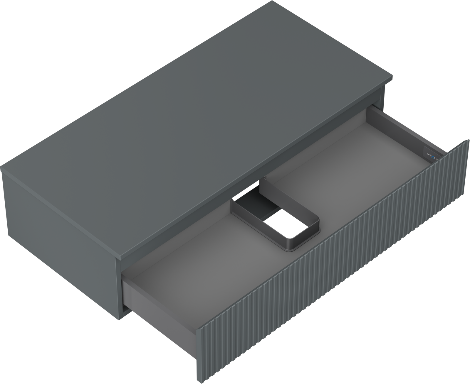 Der Ausschnitt in der Schublade ist so gestaltet, dass er den Siphon aufnehmen kann, der für Waschbeckeninstallationen erforderlich ist. Dadurch kann das Möbelstück voll funktionsfähig montiert werden, ohne auf den Platz in der Schublade zugunsten der Installation verzichten zu müssen.