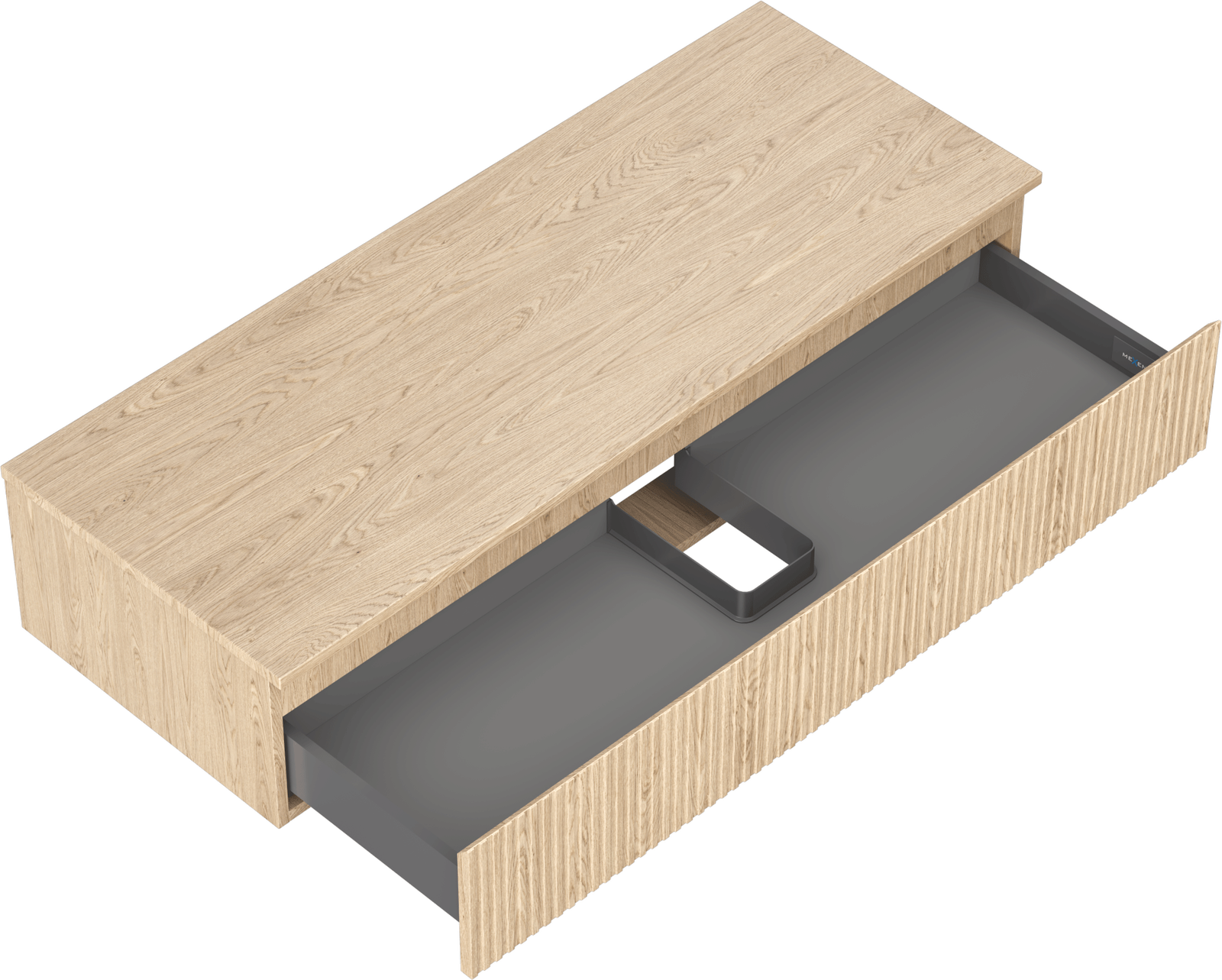 Mexen Rivel Badezimmerunterschrank 120 cm mit Arbeitsplatte, 1 Schublade, gerillt, Eiche - 91A20-12023-1-BFC81