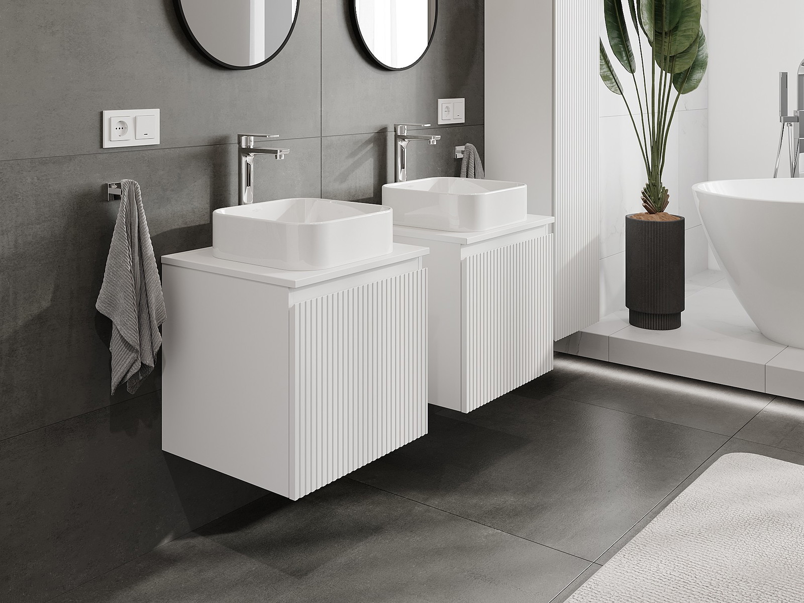Mexen Rivel Badezimmerschrank unter Waschbecken 50 cm mit Arbeitsplatte, 1 Schublade, gerillt, weiß matt - 91A20-05047-1-BFC01