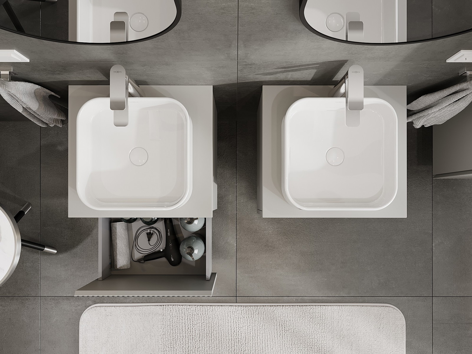 Mexen Rivel Badezimmerunterschrank 50 cm mit Arbeitsplatte, 1 Schublade, geriffelt, grau matt - 91A20-05047-1-BFC62