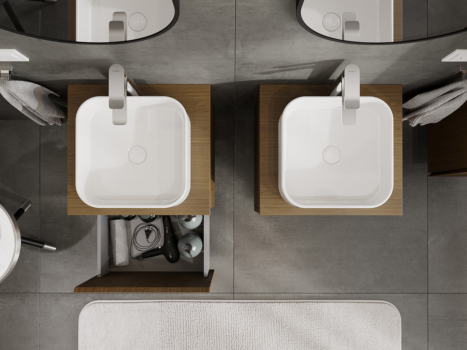 Mexen Rivel Badezimmerunterschrank 50 cm mit Oberfläche, 1 Schublade, geriffelt, Nussbaum - 91A20-05047-1-BFC86