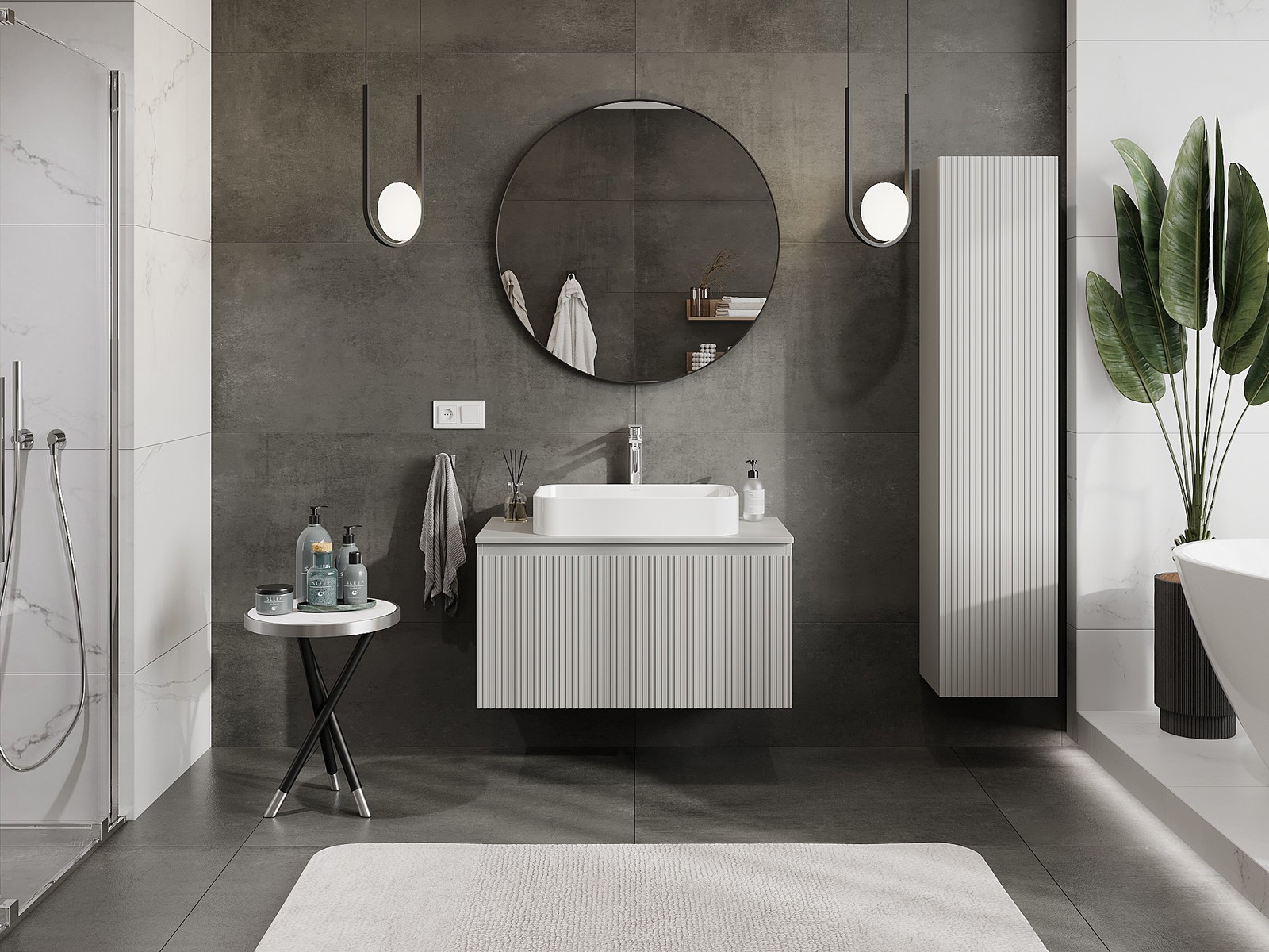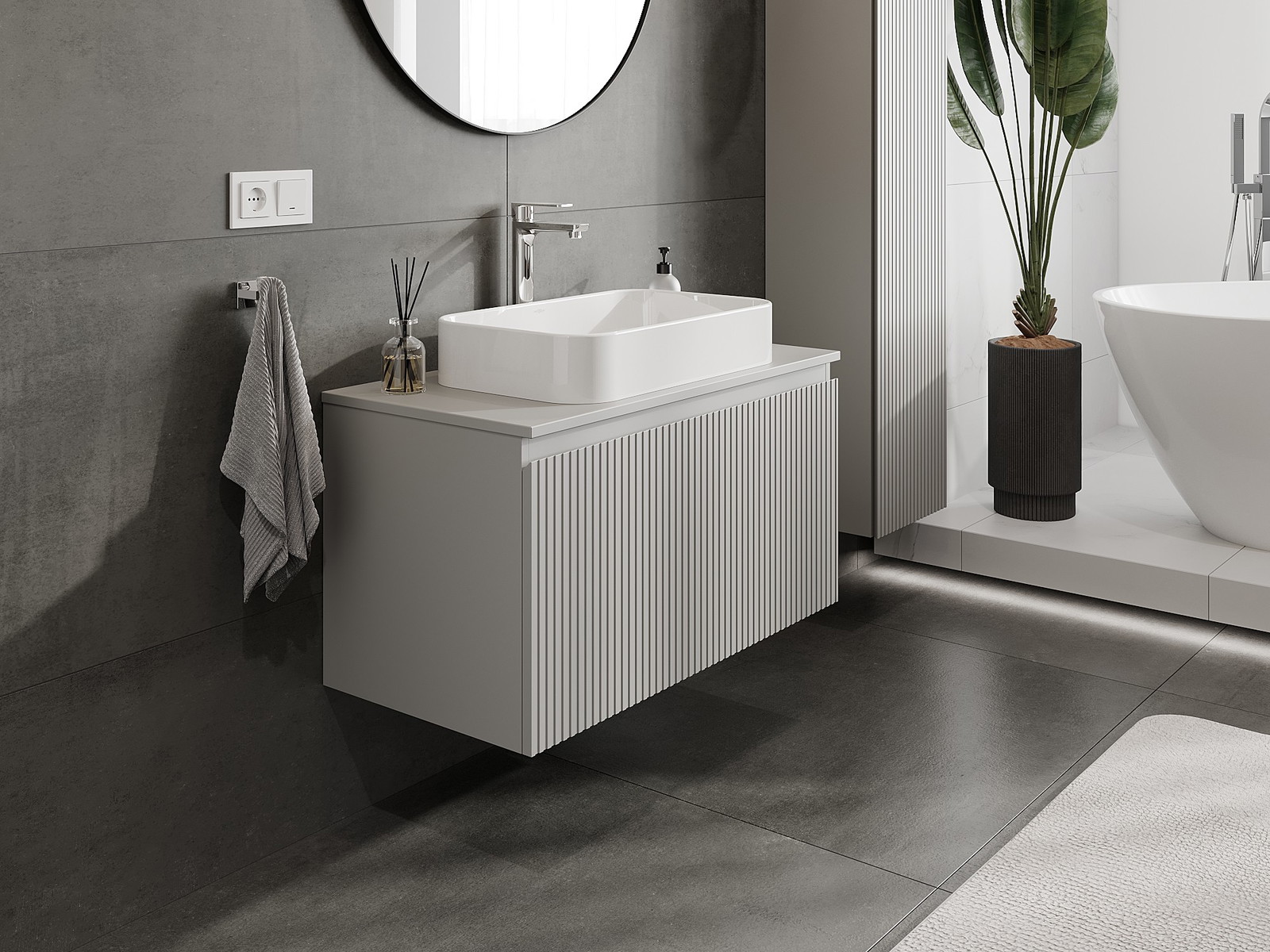Mexen Rivel Badezimmer-Unterschrank 90 cm mit Arbeitsplatte, 1 Schublade, geriffelt, graumatt - 91A20-09047-1-BFC62