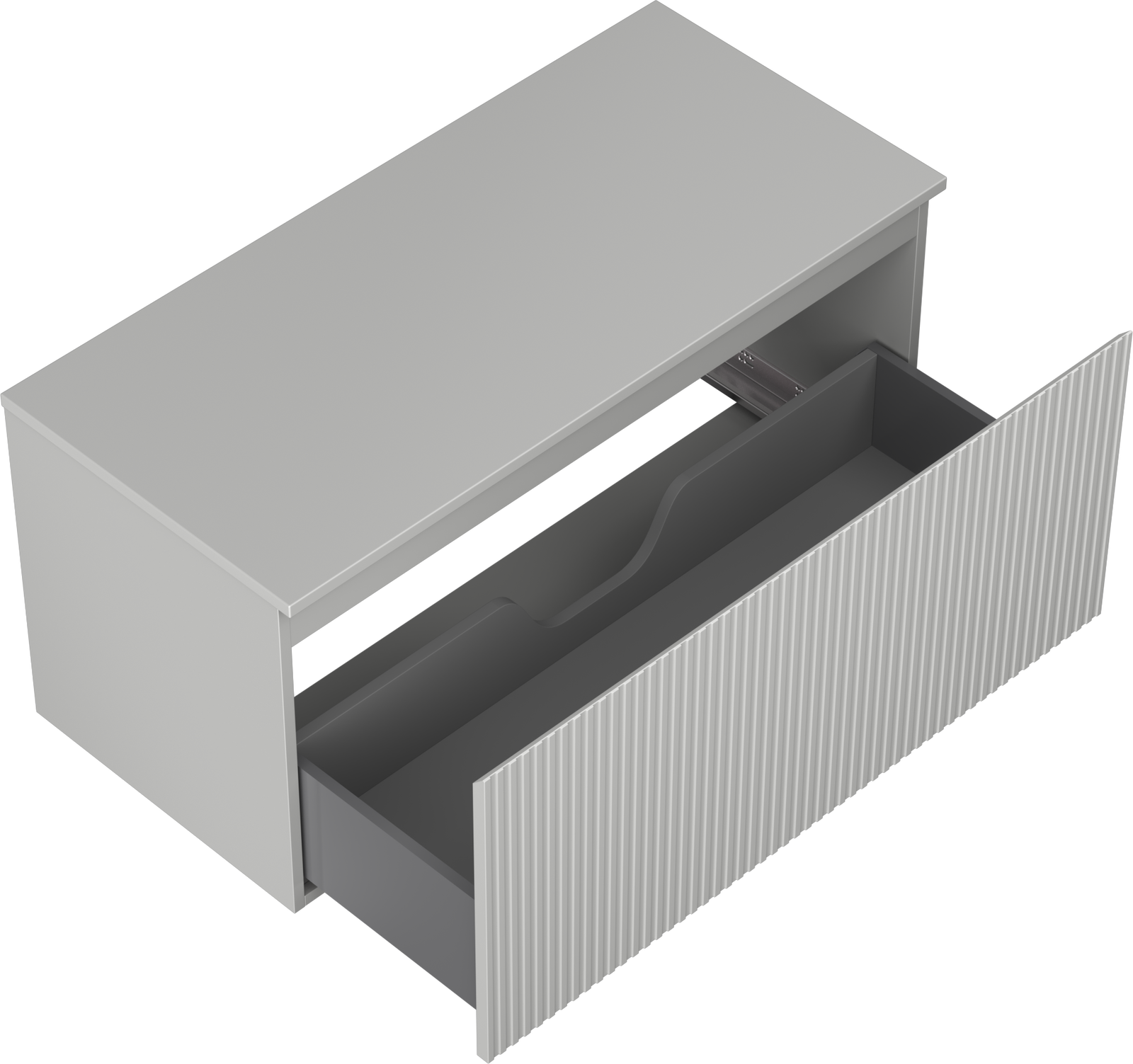 Der Ausschnitt in der Schublade ist so gestaltet, dass er den Siphon aufnehmen kann, der für Waschbeckeninstallationen erforderlich ist. Dadurch kann das Möbelstück voll funktionsfähig montiert werden, ohne auf den Platz in der Schublade zugunsten der Installation verzichten zu müssen.