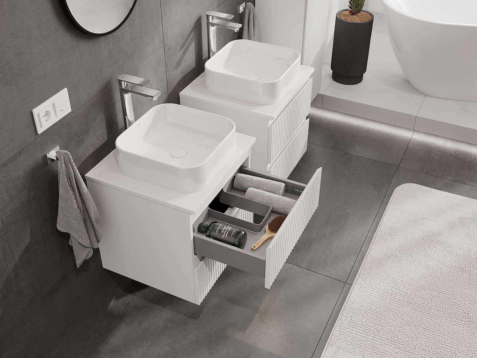 Mexen Rivel Badezimmerschrank 50 cm mit Platte, 2 Schubladen, geriffelt, weiß matt - 91A20-05047-2-BFFC01