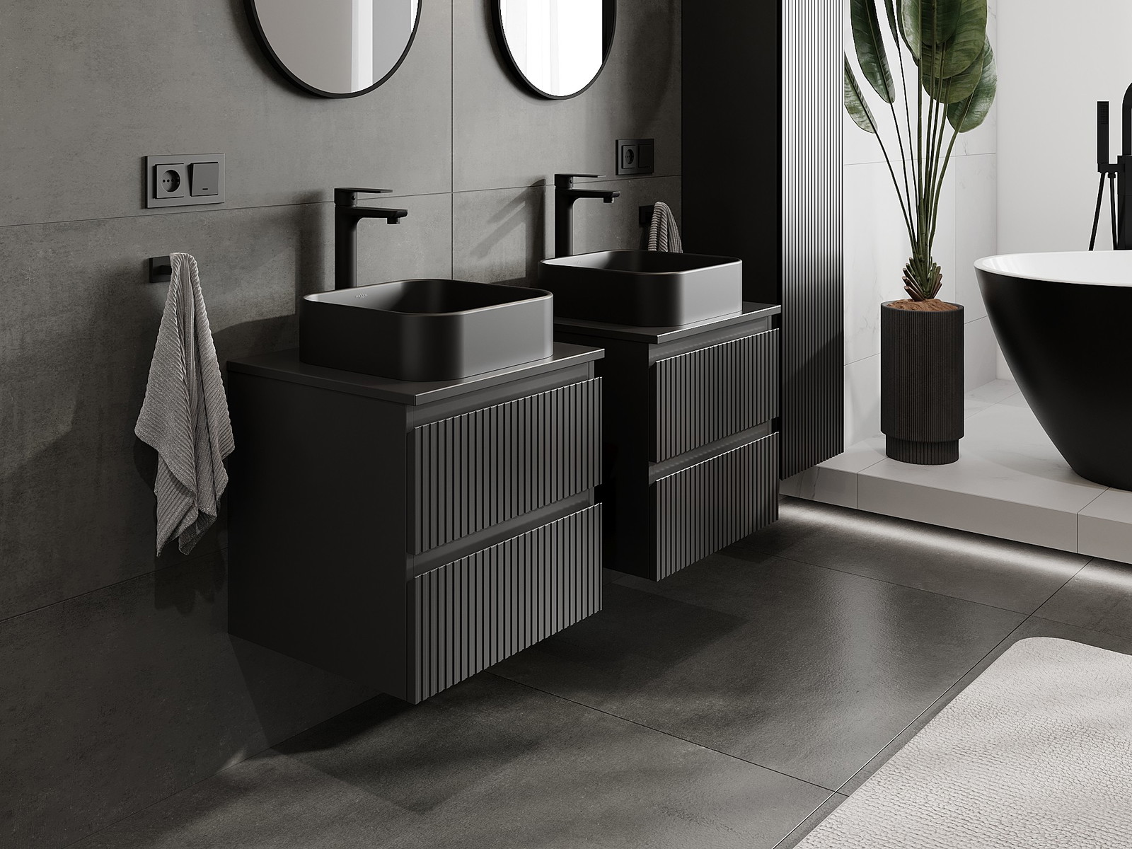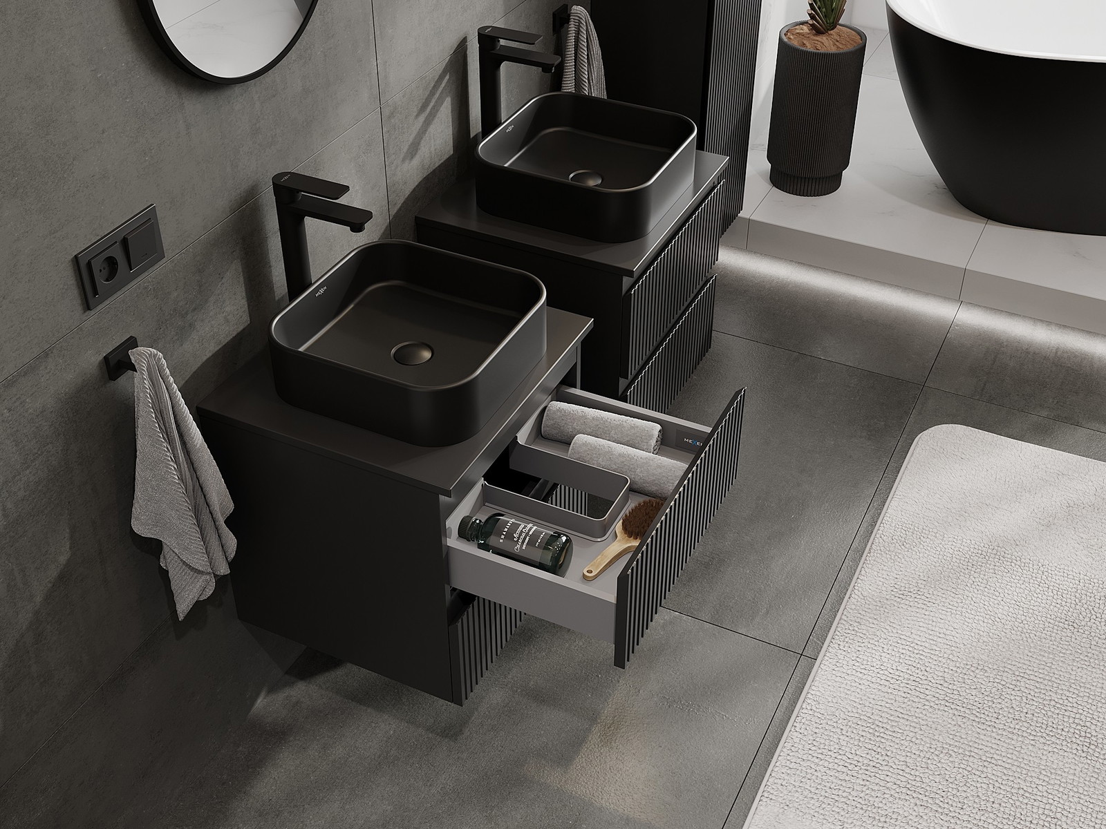 Mexen Rivel Badezimmer-Unterschrank 50 cm mit Platte, 2 Schubladen, geriffelt, schwarz matt - 91A20-05047-2-BFFC71