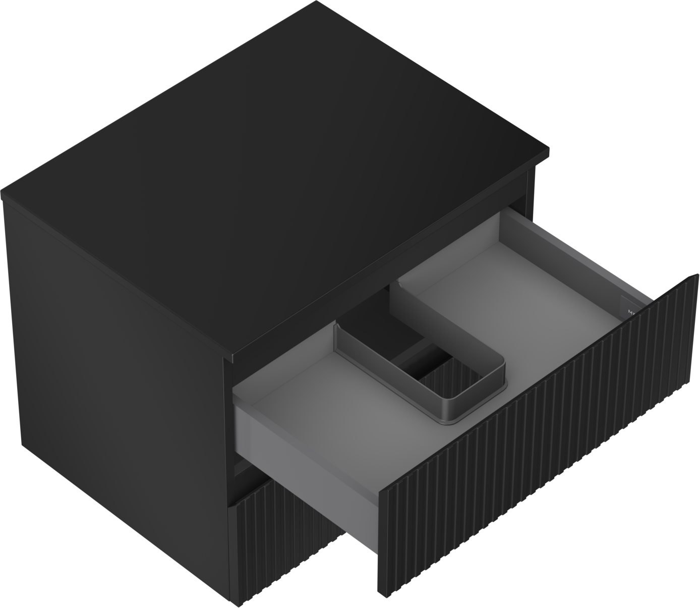 Der Ausschnitt in der Schublade ist so gestaltet, dass er den Siphon aufnehmen kann, der für Waschbeckeninstallationen erforderlich ist. Dadurch kann das Möbelstück voll funktionsfähig montiert werden, ohne auf den Platz in der Schublade zugunsten der Installation verzichten zu müssen.