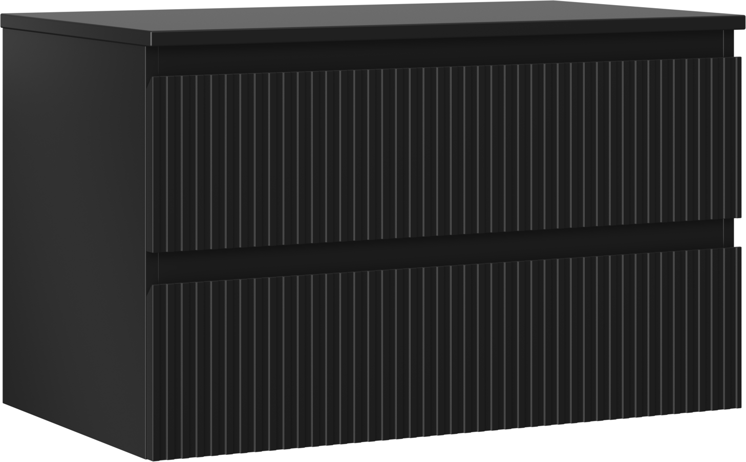 Mexen Rivel Badezimmer-Unterschrank 80 cm mit Arbeitsplatte, 2 Schubladen, geriffelt, schwarz matt - 91A20-08047-2-BFFC71