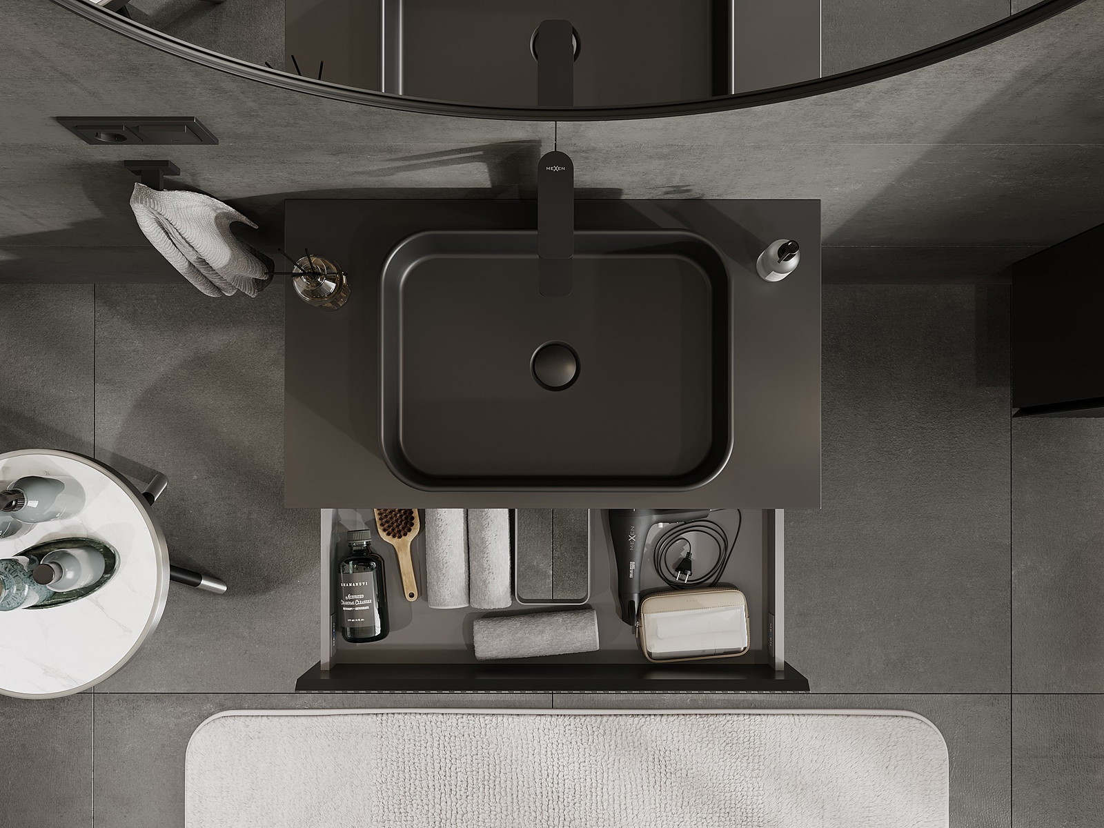 Unsere modularen Badezimmermöbel können in verschiedenen Farbkonfigurationen miteinander kombiniert werden, wodurch eine vollständige Personalisierung ermöglicht wird. Man kann sowohl das Aussehen als auch die Funktionen der einzelnen Elemente auswählen, was es erlaubt, die Möbel an eigene stilistische und funktionale Vorlieben anzupassen.