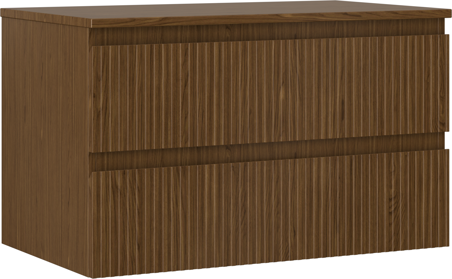 Mexen Rivel Badezimmerunterschrank 80 cm mit Platte, 2 Schubladen, geriffelt, Nussbaum - 91A20-08047-2-BFFC86