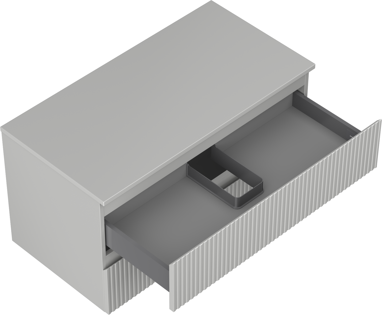 Der Ausschnitt in der Schublade ist so gestaltet, dass er den Siphon aufnehmen kann, der für Waschbeckeninstallationen erforderlich ist. Dadurch kann das Möbelstück voll funktionsfähig montiert werden, ohne auf den Platz in der Schublade zugunsten der Installation verzichten zu müssen.