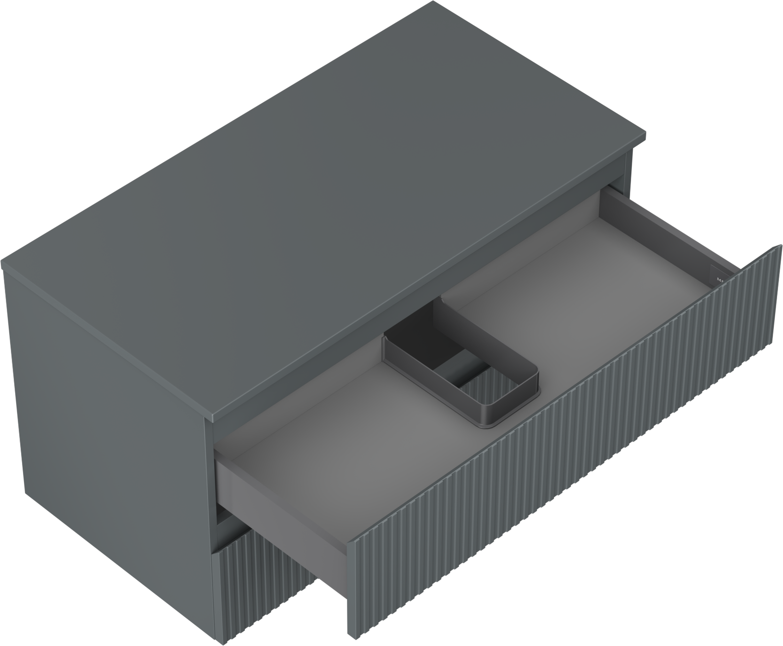 Der Ausschnitt in der Schublade ist so gestaltet, dass er den Siphon aufnehmen kann, der für Waschbeckeninstallationen erforderlich ist. Dadurch kann das Möbelstück voll funktionsfähig montiert werden, ohne auf den Platz in der Schublade zugunsten der Installation verzichten zu müssen.