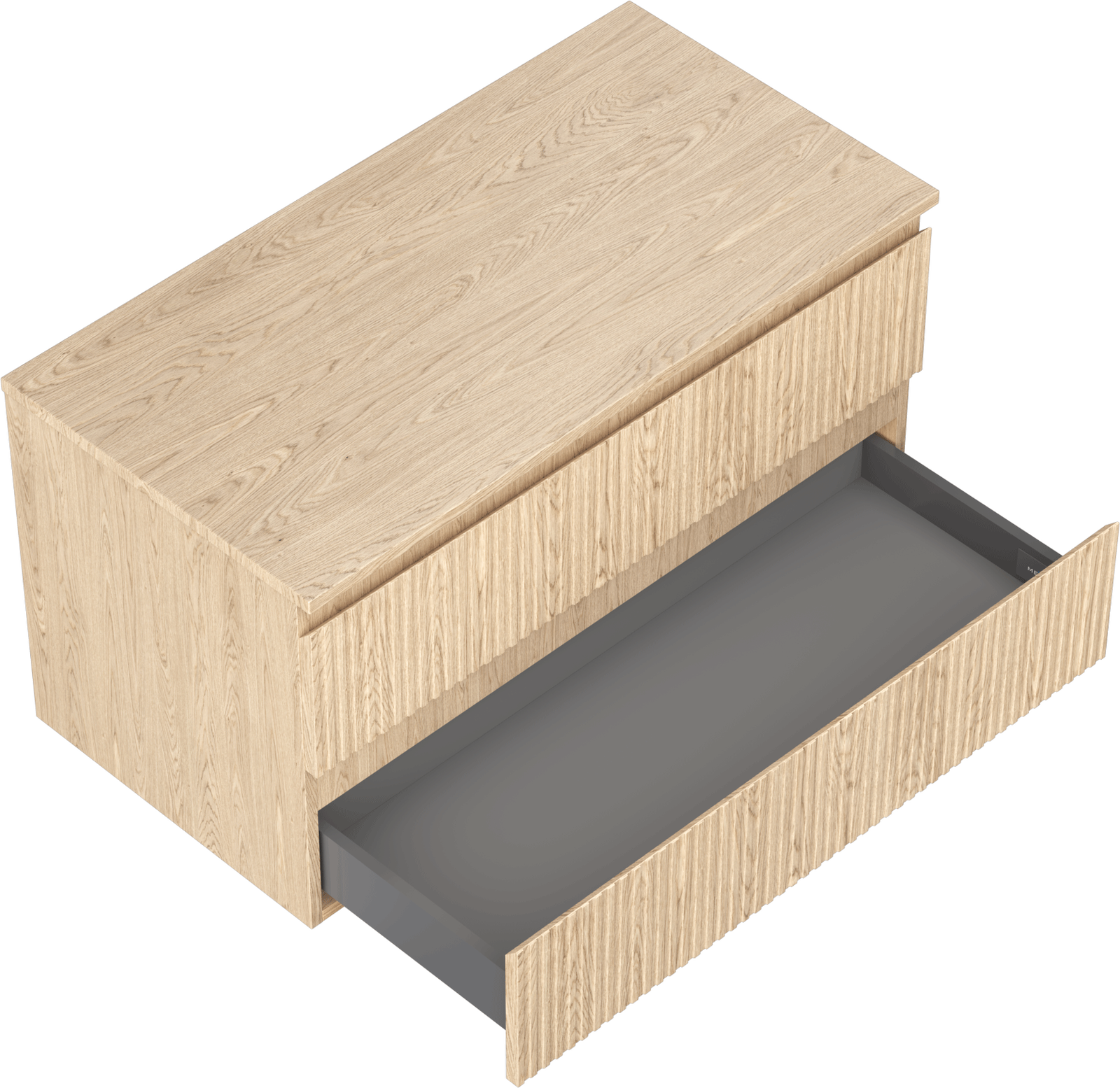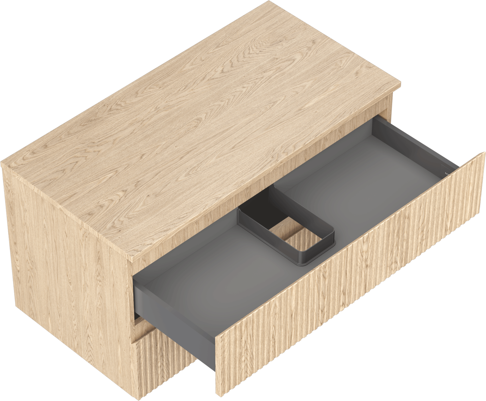 Der Ausschnitt in der Schublade ist für die Aufnahme eines Siphons ausgelegt, der für die Installation von Waschbecken unerlässlich ist. Dadurch kann das Möbelstück voll funktionsfähig installiert werden, ohne dass für die Installation Schubladenplatz geopfert werden muss.