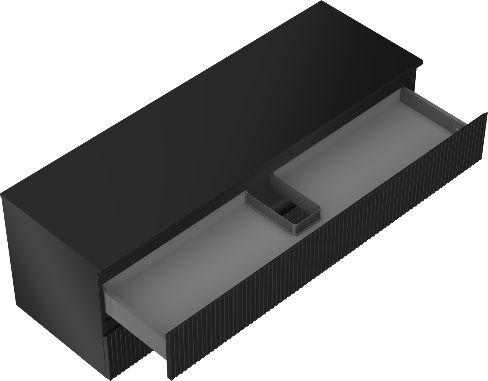 Der Ausschnitt in der Schublade ist so gestaltet, dass er den Siphon aufnehmen kann, der für Waschbeckeninstallationen erforderlich ist. Dadurch kann das Möbelstück voll funktionsfähig montiert werden, ohne auf den Platz in der Schublade zugunsten der Installation verzichten zu müssen.