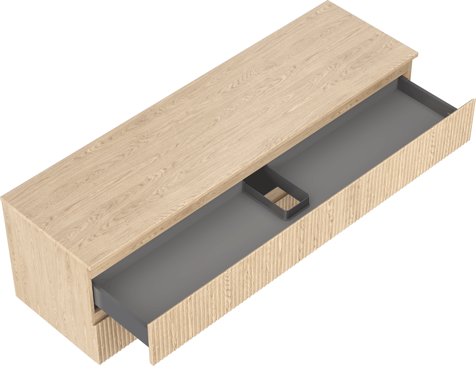 Der Ausschnitt in der Schublade ist für die Aufnahme eines Siphons ausgelegt, der für die Installation von Waschbecken unerlässlich ist. Dadurch kann das Möbelstück voll funktionsfähig installiert werden, ohne dass für die Installation Schubladenplatz geopfert werden muss.