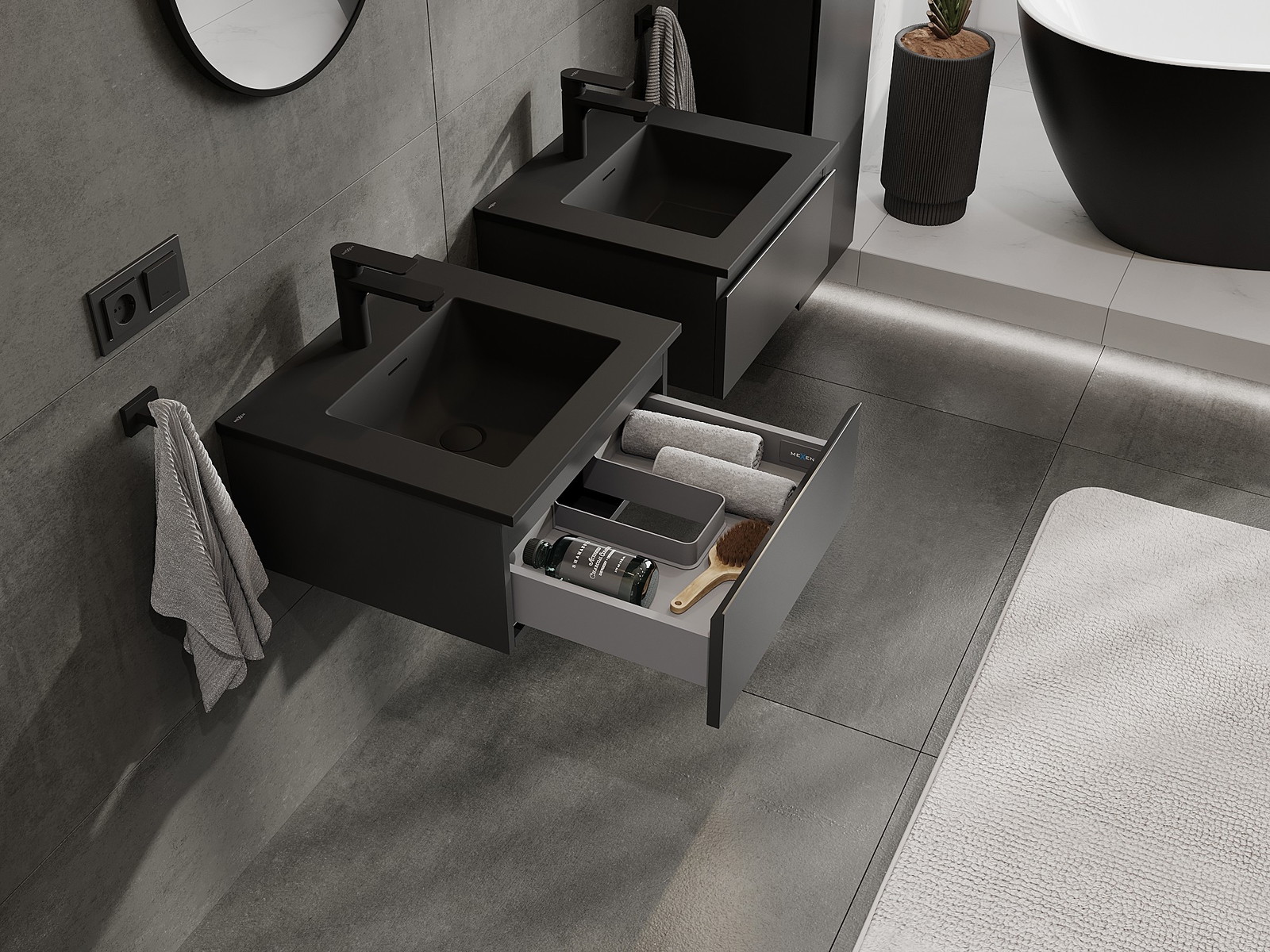 Mexen Orio Badezimmerschrank 50 cm mit Waschbecken Otis, 1 Schublade, schwarz matt - 91A10-05023-1-BF71-W18M71