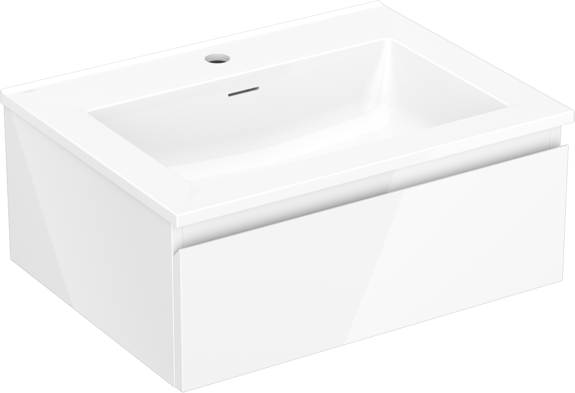 Mexen Orio Badezimmerschrank 60 cm mit Waschbecken Otis, 1 Schublade, weißer Glanz - 91A10-06023-1-BF00-W18M00
