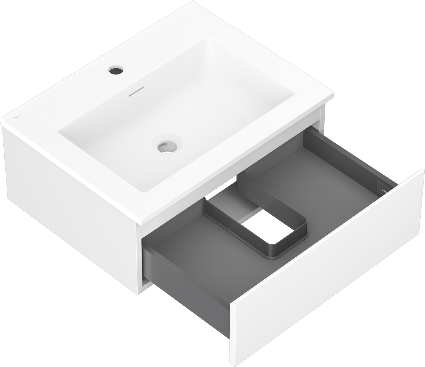 Der Ausschnitt in der Schublade ist so gestaltet, dass er den Siphon aufnehmen kann, der für Waschbeckeninstallationen erforderlich ist. Dadurch kann das Möbelstück voll funktionsfähig montiert werden, ohne auf den Platz in der Schublade zugunsten der Installation verzichten zu müssen.