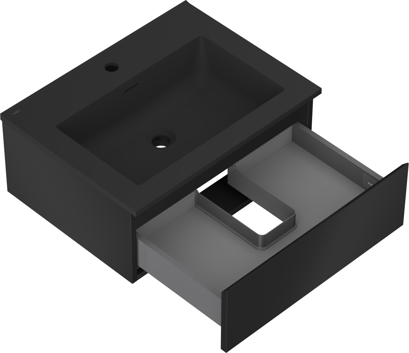 Mexen Orio Badezimmerschrank 60 cm mit Waschbecken Otis, 1 Schublade, schwarz matt - 91A10-06023-1-BF71-W18M71
