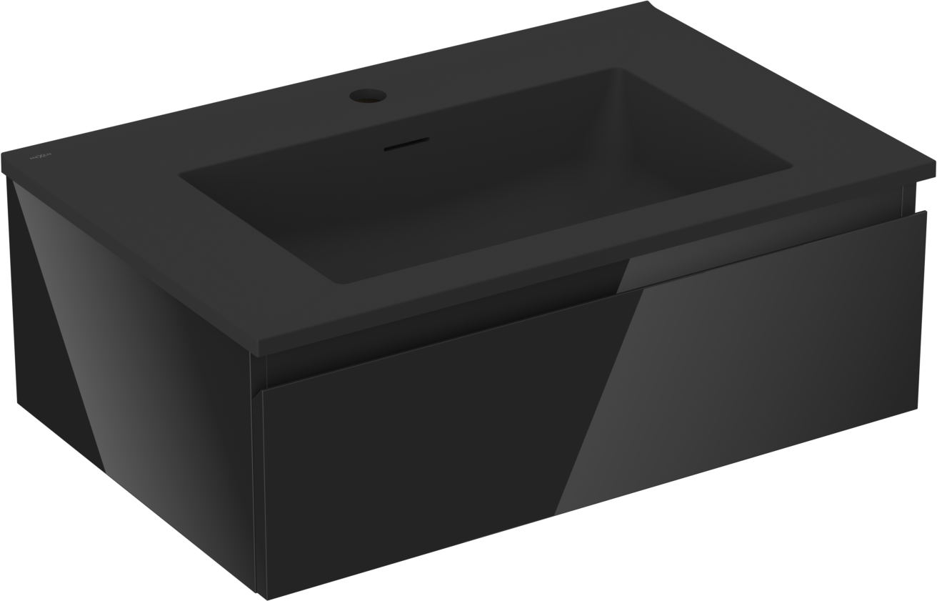 Mexen Orio Badezimmerschrank 70 cm mit Waschbecken Otis, 1 Schublade, Schwarz Glanz/Schwarz Matt - 91A10-07023-1-BF70-W18M71