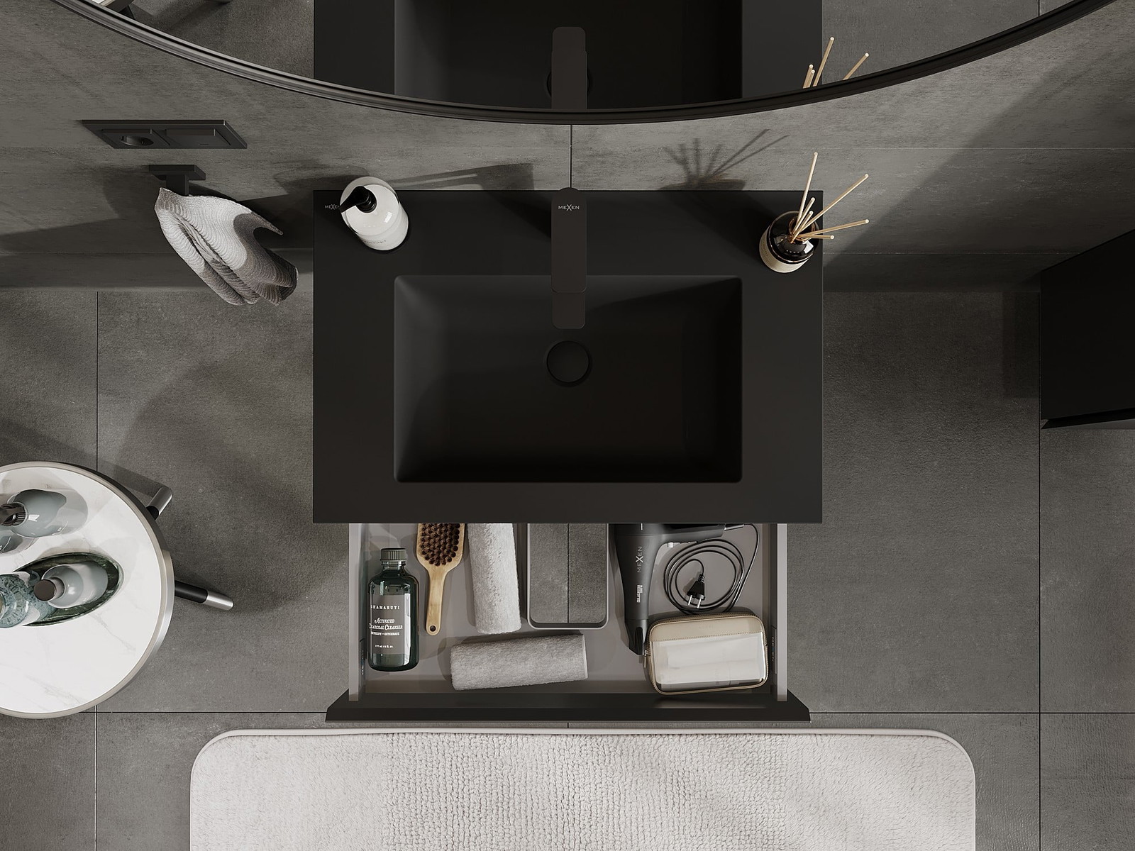 Mexen Orio Badezimmer-Schrank 70 cm mit Waschbecken Otis, 1 Schublade, Schwarz Matt - 91A10-07023-1-BF71-W18M71