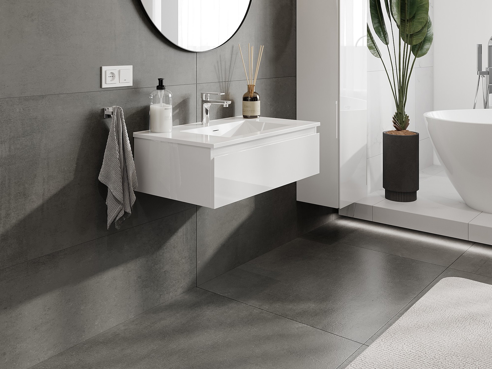 Unsere modularen Badezimmermöbel können in verschiedenen Farbkonfigurationen miteinander kombiniert werden, wodurch eine vollständige Personalisierung ermöglicht wird. Man kann sowohl das Aussehen als auch die Funktionen der einzelnen Elemente auswählen, was es erlaubt, die Möbel an eigene stilistische und funktionale Vorlieben anzupassen.