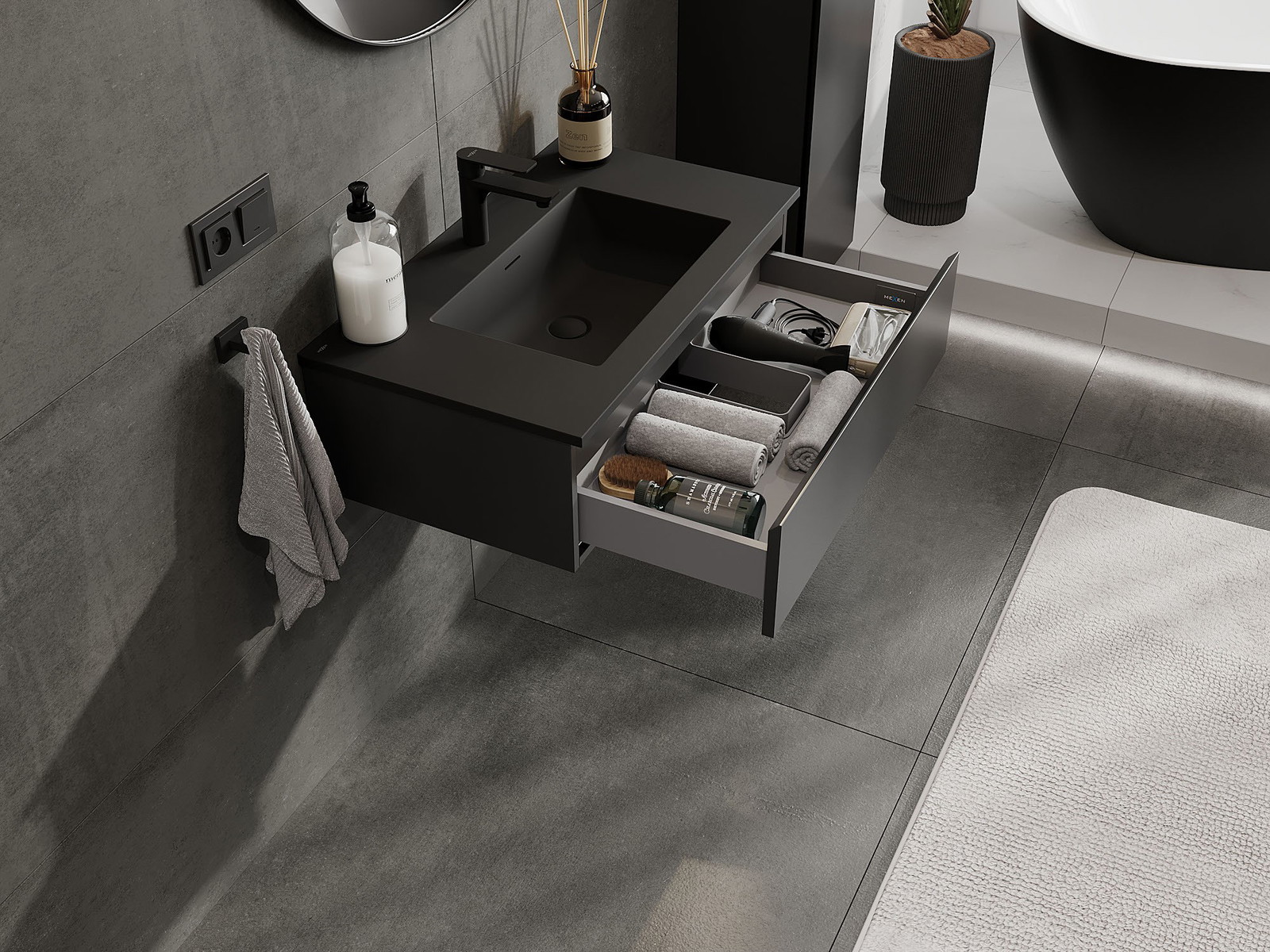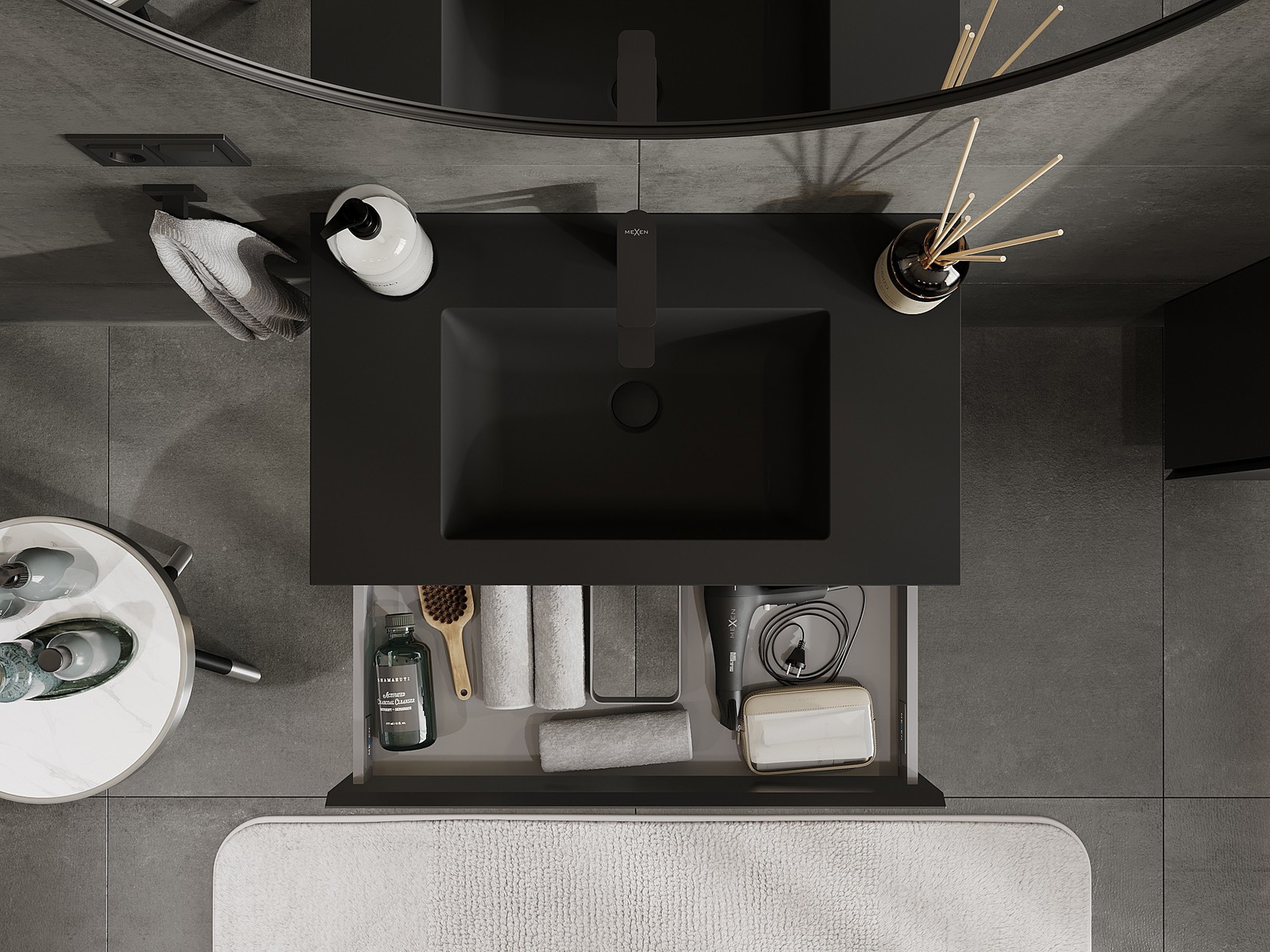 Mexen Orio Badezimmerschrank 80 cm mit Waschbecken Otis, 1 Schublade, schwarz matt - 91A10-08023-1-BF71-W18M71