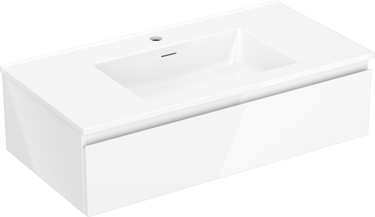 Mexen Orio Badezimmerschrank 90 cm mit Waschbecken Otis, 1 Schublade, weiß glänzend - 91A10-09023-1-BF00-W18M00