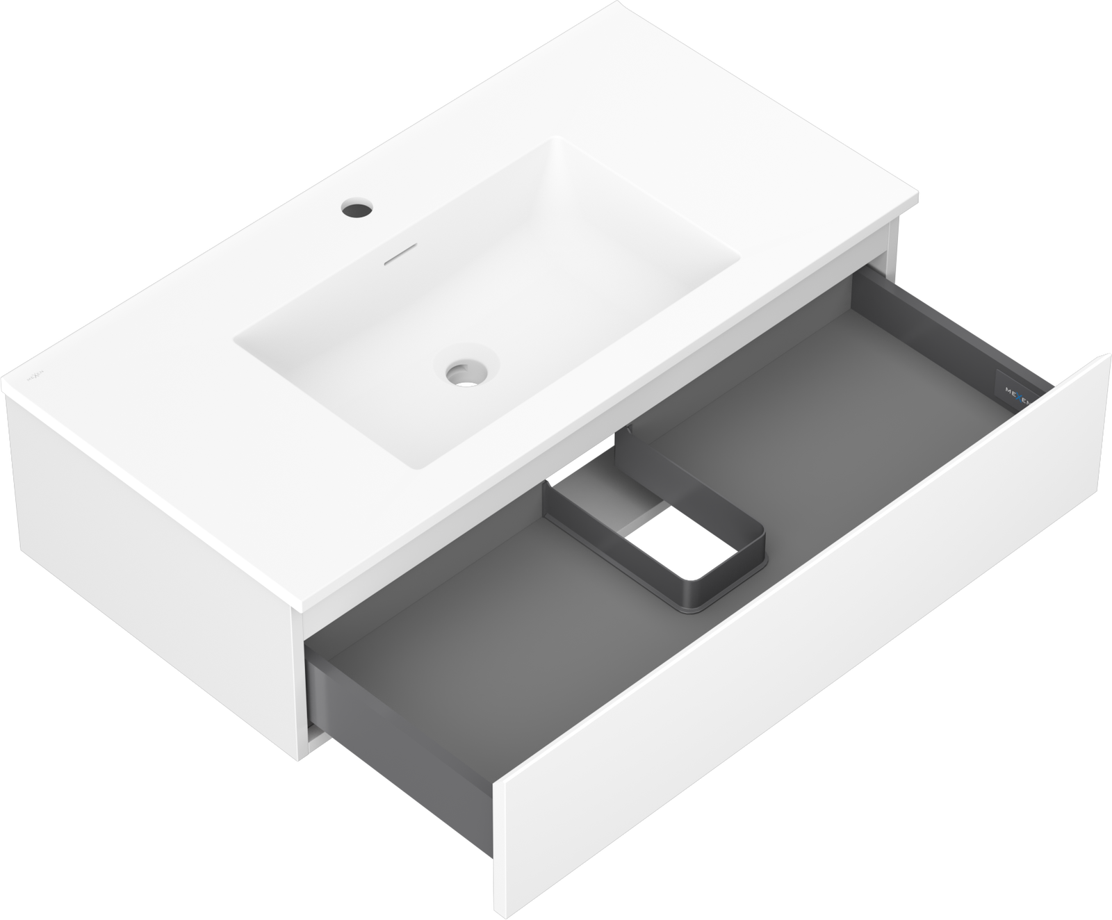 Mexen Orio Badezimmerschrank 90 cm mit Waschbecken Otis, 1 Schublade, weiß matt - 91A10-09023-1-BF01-W18M01
