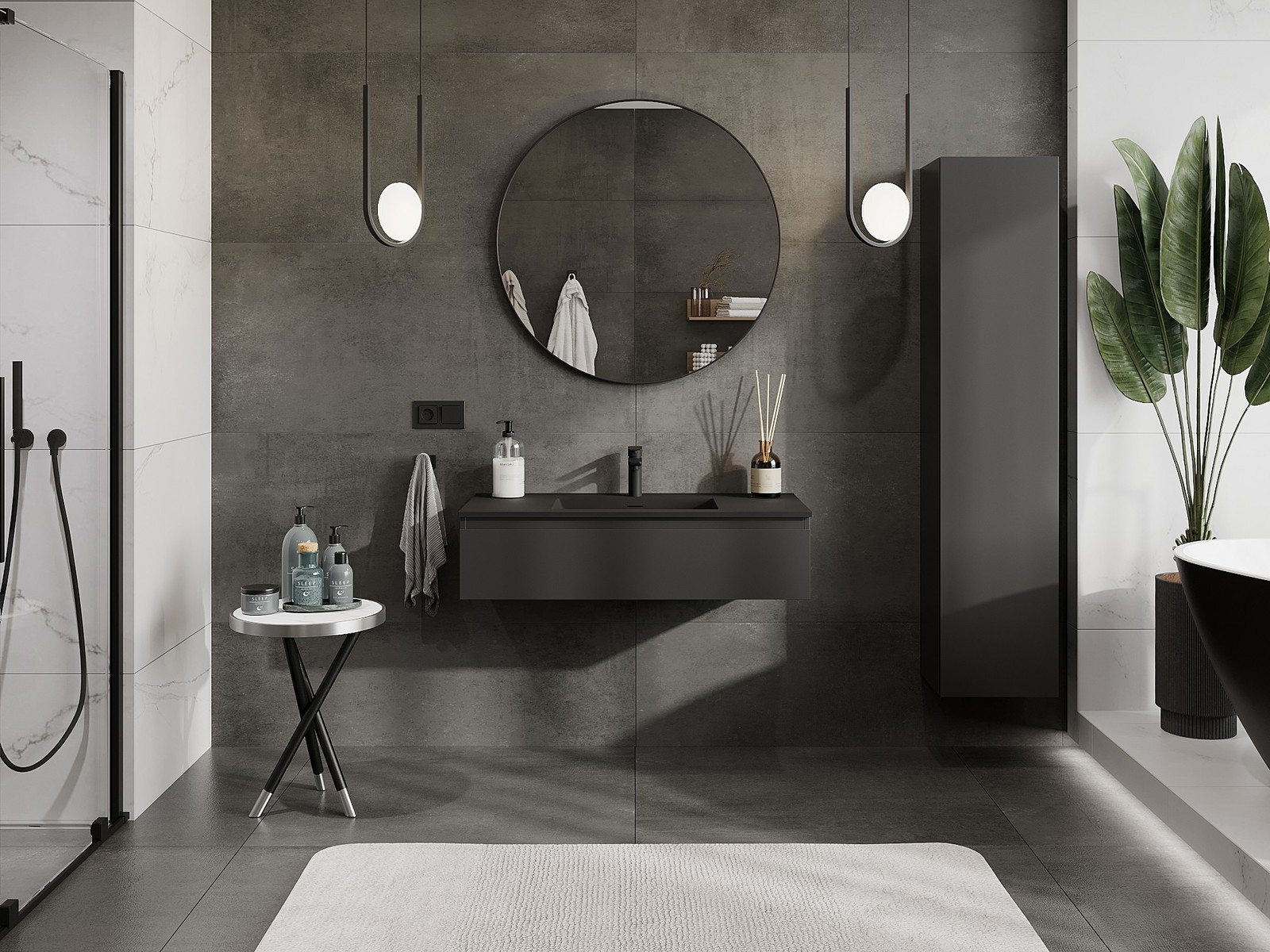 Mexen Orio Badezimmerschrank 100 cm mit Waschbecken Otis, 1 Schublade, schwarz matt - 91A10-10023-1-BF71-W18M71