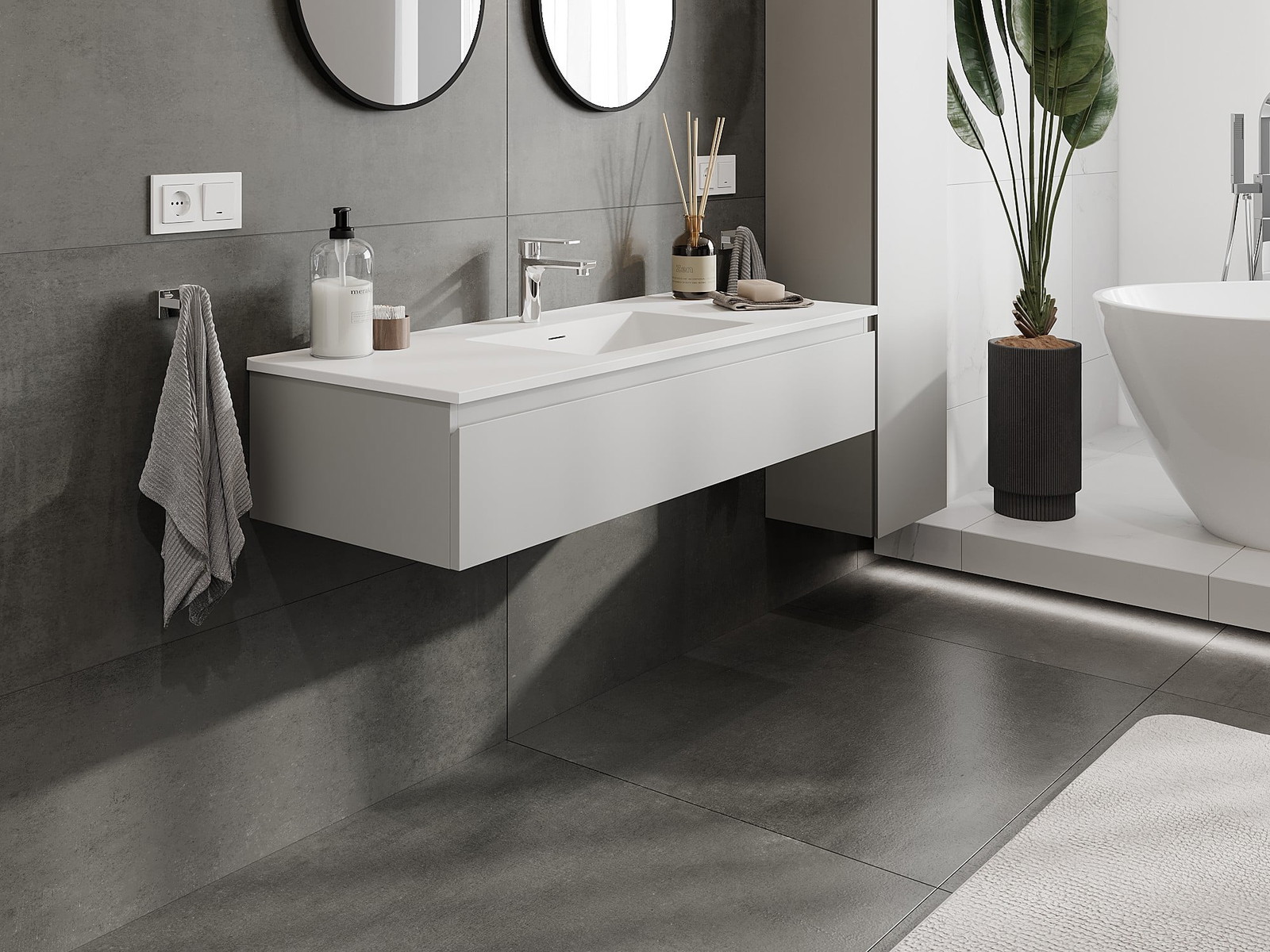 Unsere modularen Badezimmermöbel können in verschiedenen Farbkonfigurationen miteinander kombiniert werden, wodurch eine vollständige Personalisierung ermöglicht wird. Man kann sowohl das Aussehen als auch die Funktionen der einzelnen Elemente auswählen, was es erlaubt, die Möbel an eigene stilistische und funktionale Vorlieben anzupassen.