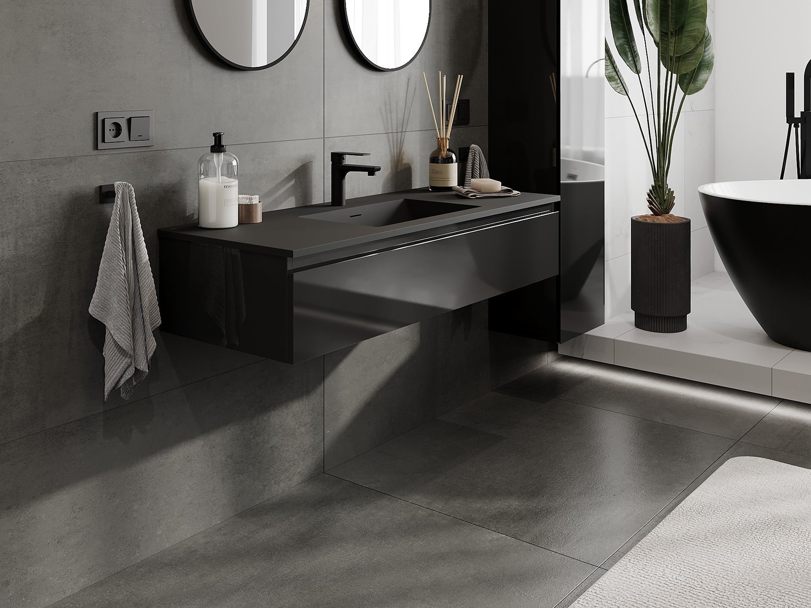 Unsere modularen Badezimmermöbel können in verschiedenen Farbkonfigurationen miteinander kombiniert werden, wodurch eine vollständige Personalisierung ermöglicht wird. Man kann sowohl das Aussehen als auch die Funktionen der einzelnen Elemente auswählen, was es erlaubt, die Möbel an eigene stilistische und funktionale Vorlieben anzupassen.